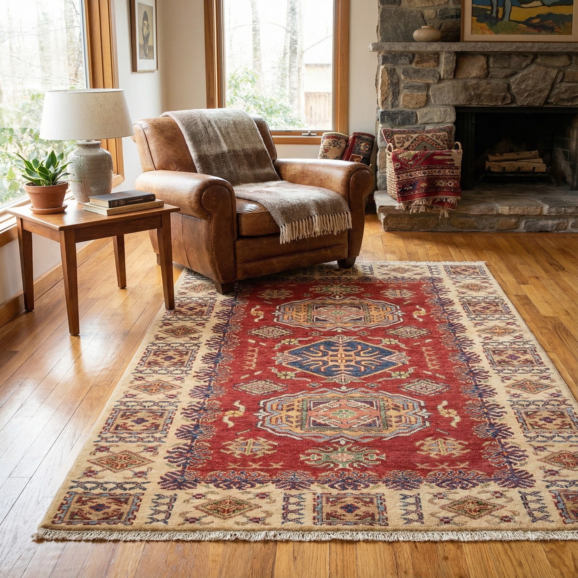 3' 4 x 4' 10 Hand Knotted Kazak Oriental Rug