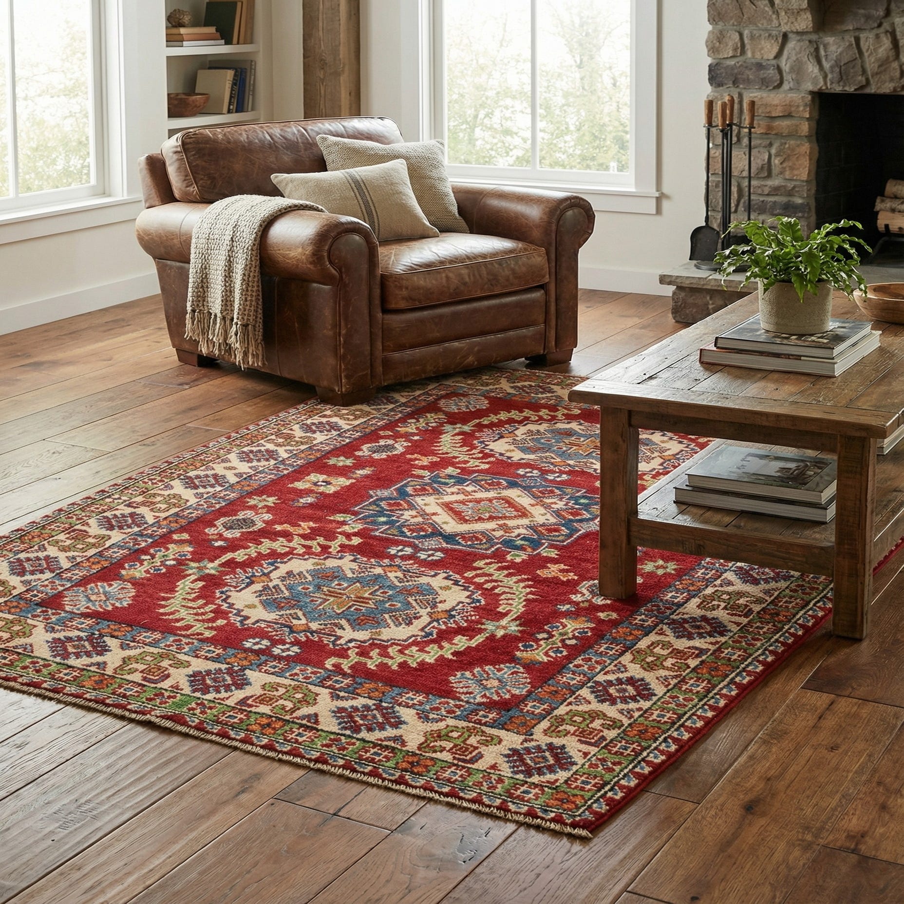 Detail image of 3' 5 x 5'  Hand Knotted Kazak Rug
