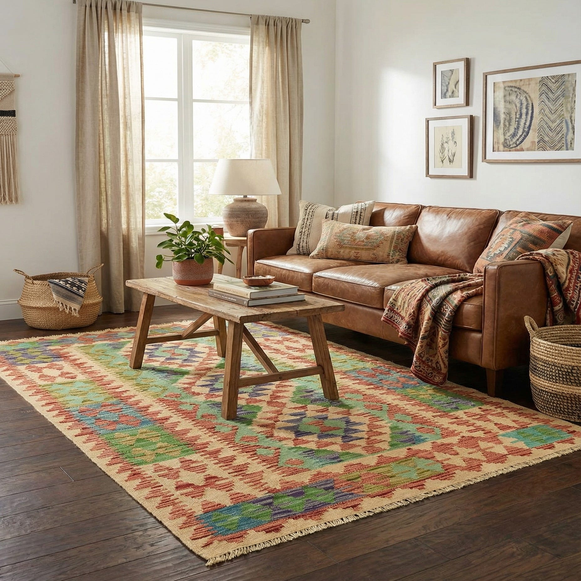 3' 3 x 5' 1 Hand Woven Kilim Maymana Wool Rug