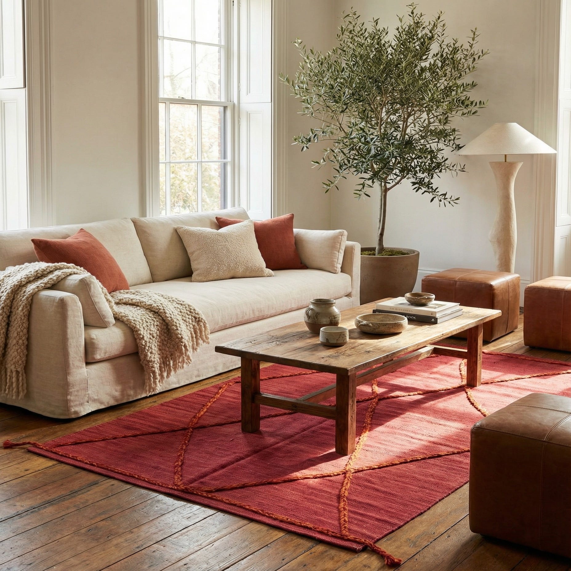 Primary color is Red. Colors in this rug include: Red, Terracotta.
