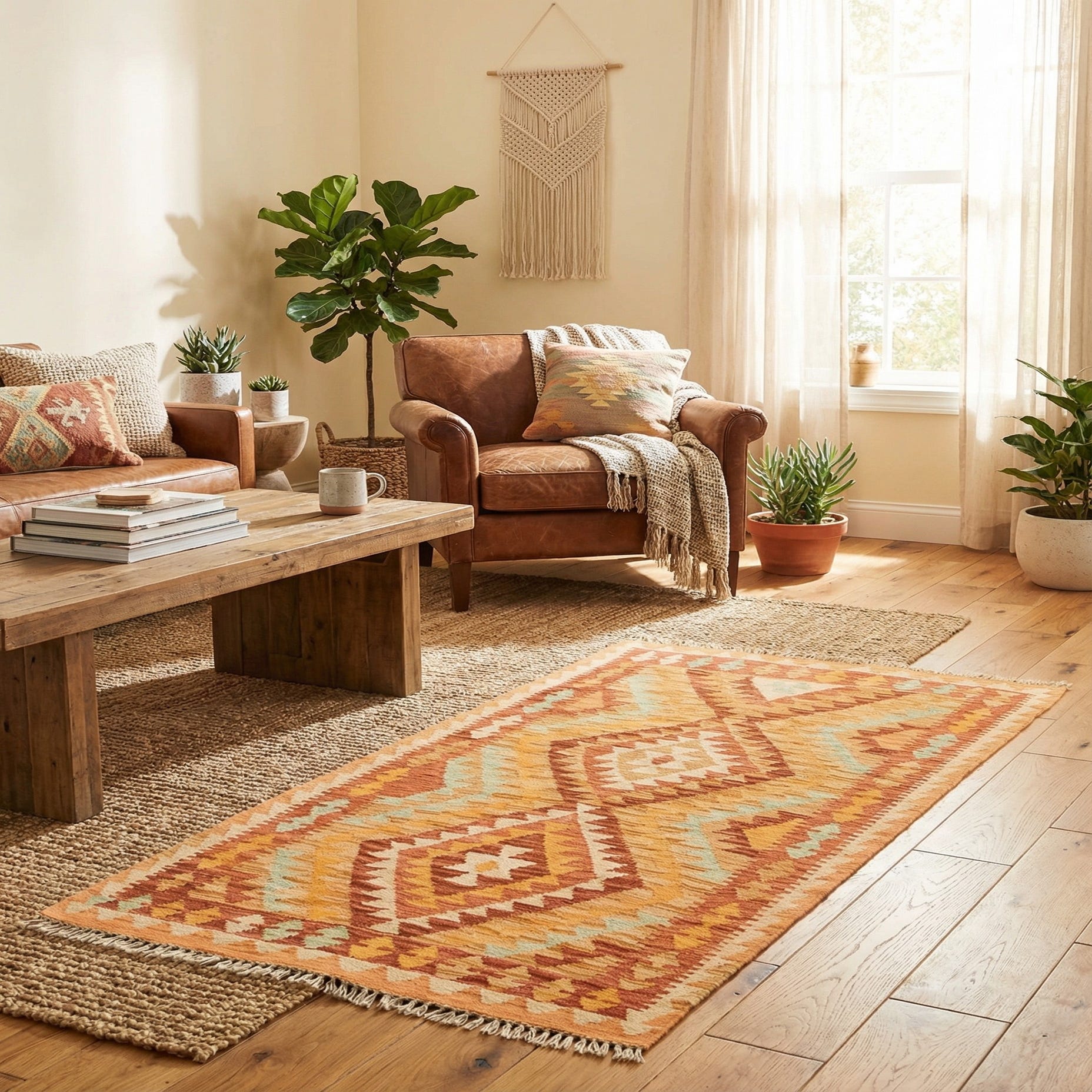 2' 10 x 4' 8 Hand Woven Kilim Waziri Wool Rug