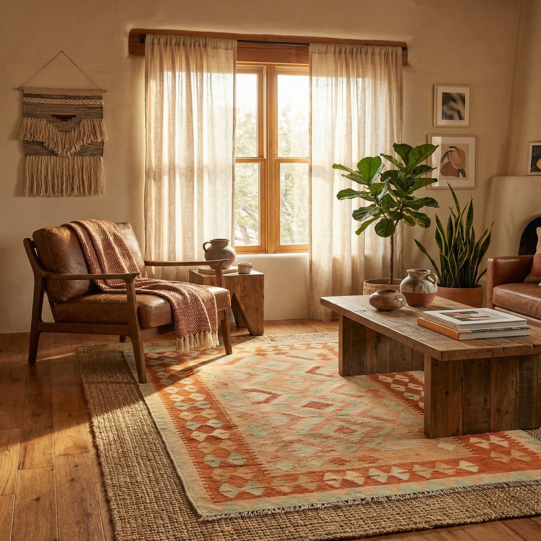 3' 5 x 5' Hand Woven Kilim Waziri Wool Rug