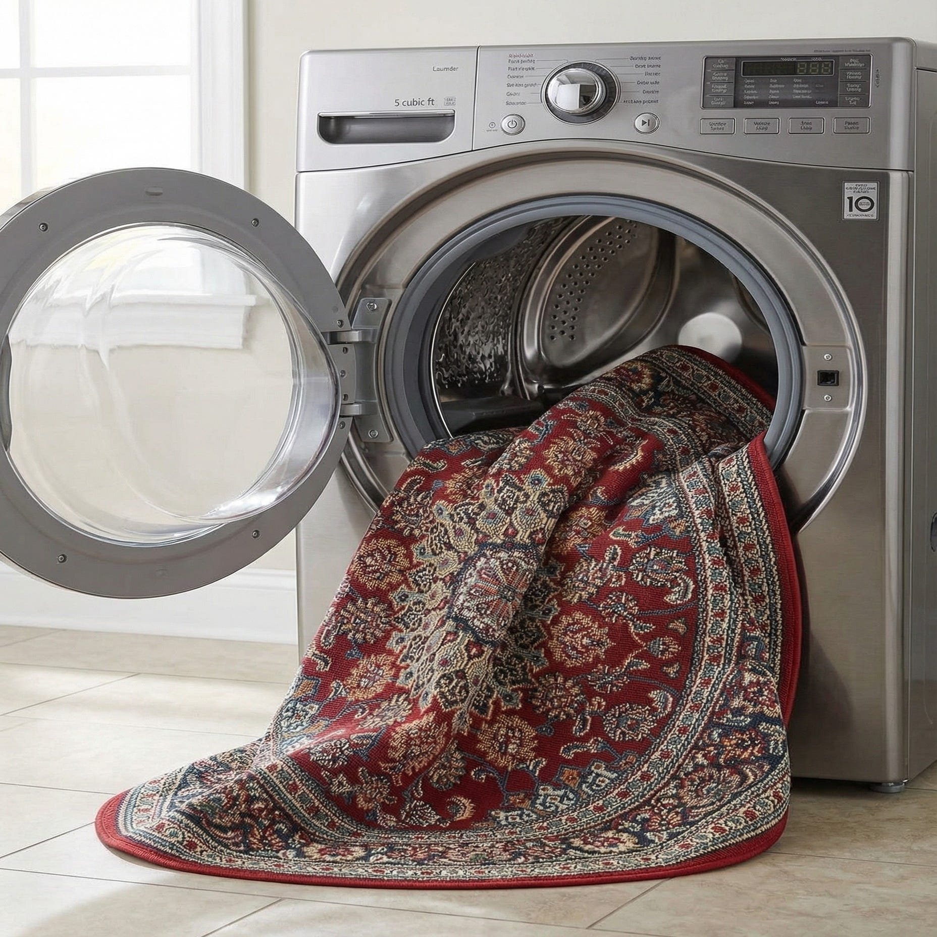 Primary image 4' 1 x 4' 1  Washable Traditional Indoor / Outdoor Round Rug