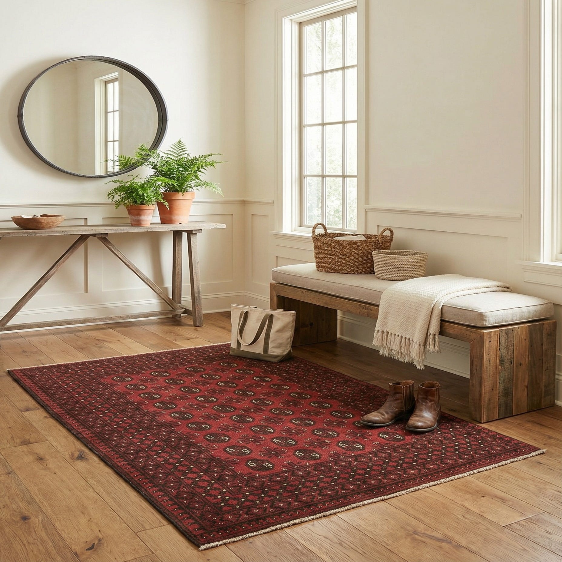 4' 10 x 6' 5 Hand Knotted Afghan Akhche Wool Rug