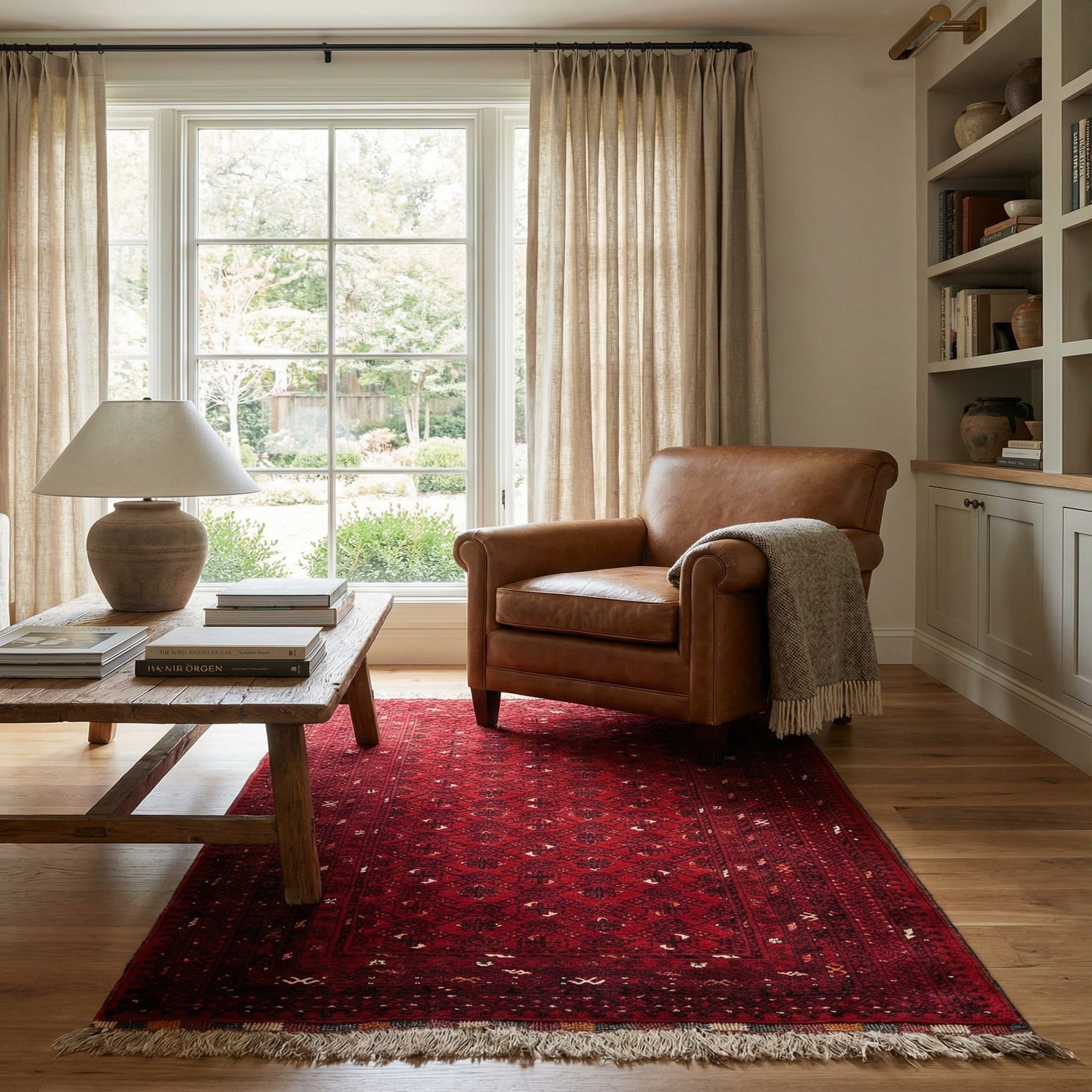 3' 5 x 6' 4 Hand Knotted Afghan Ersari Oriental Wool Rug