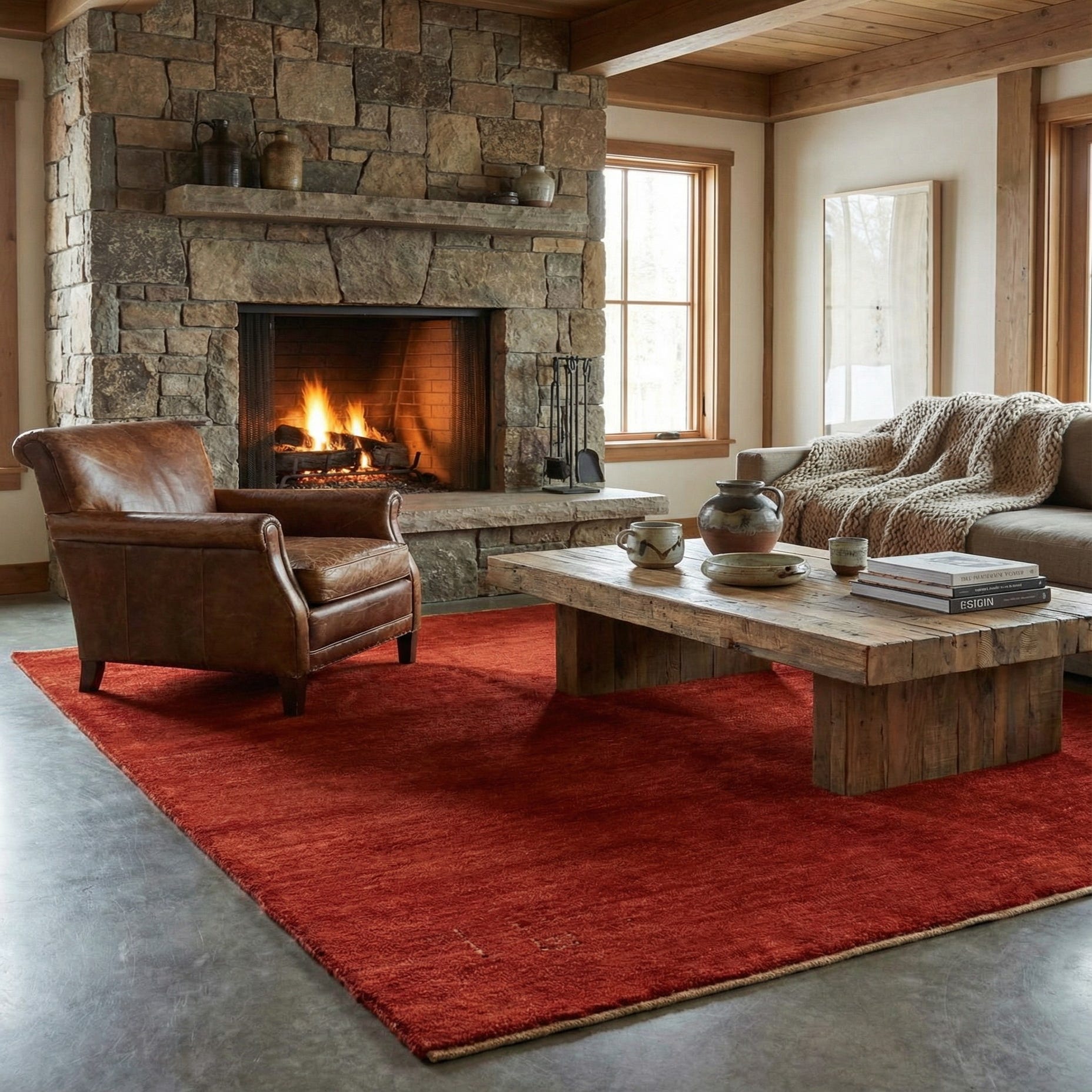 Primary color is Red. Colors in this rug include: Red, Orange.