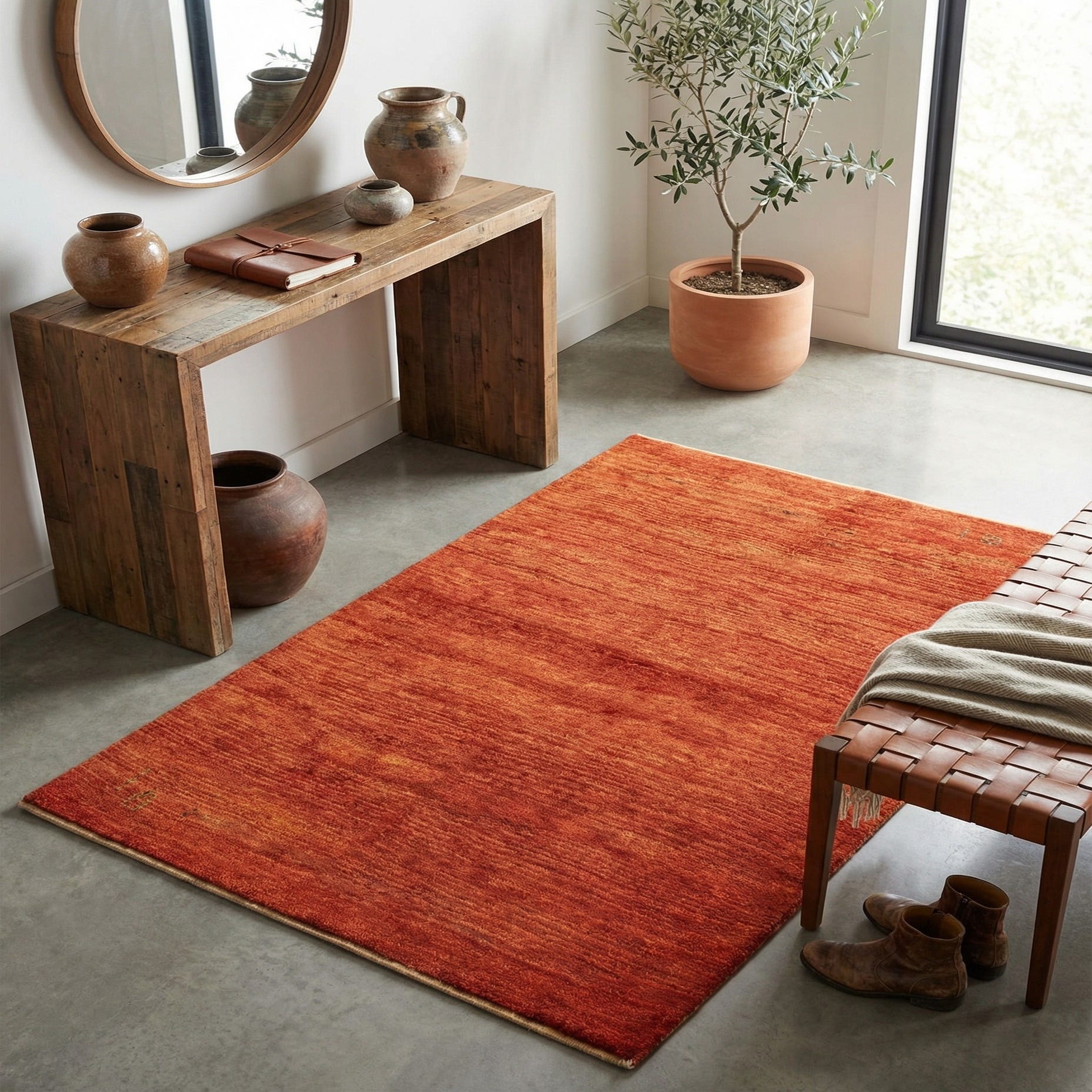 Primary color is Red. Colors in this rug include: Red, Orange.