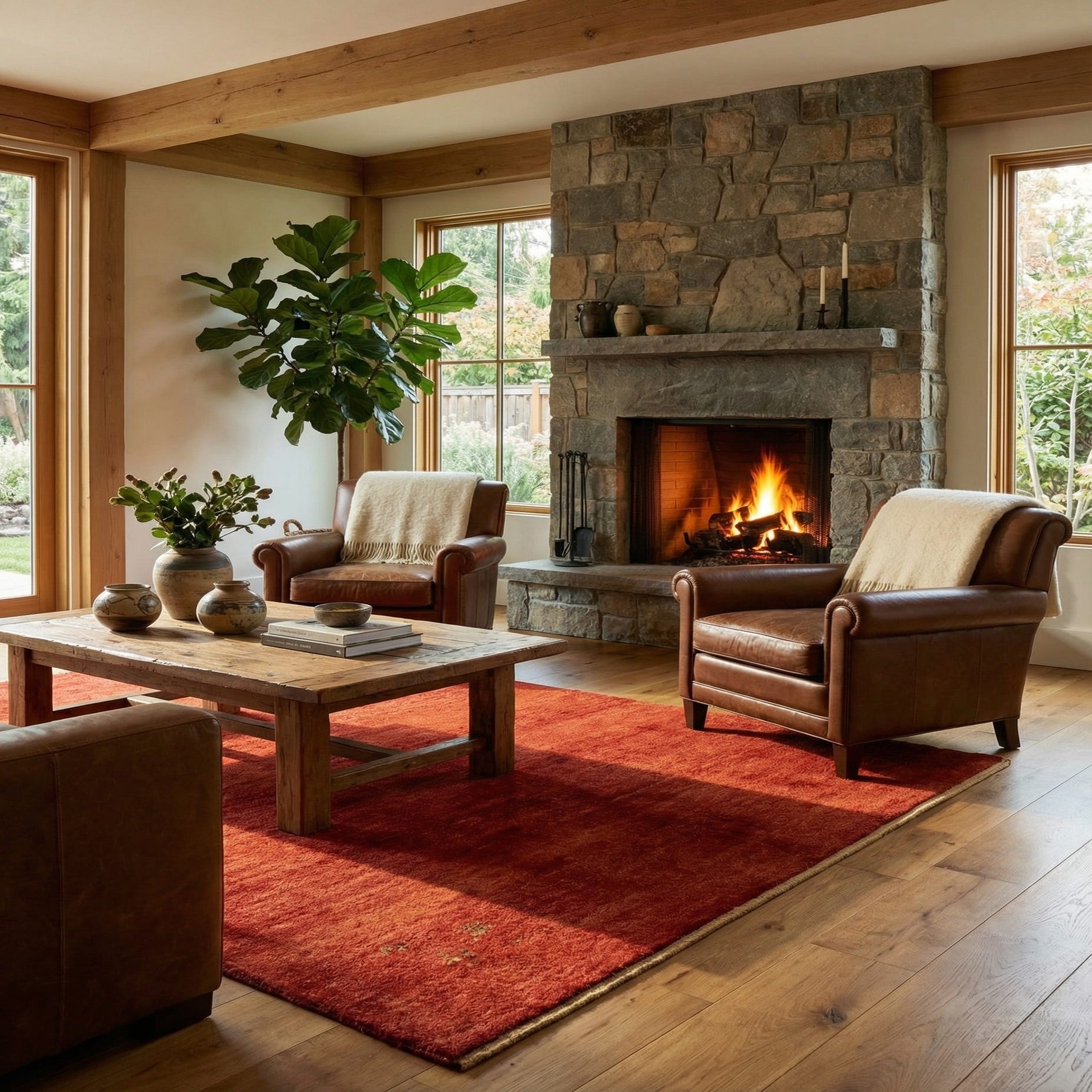 Primary color is Red. Colors in this rug include: Red, Orange, Red.