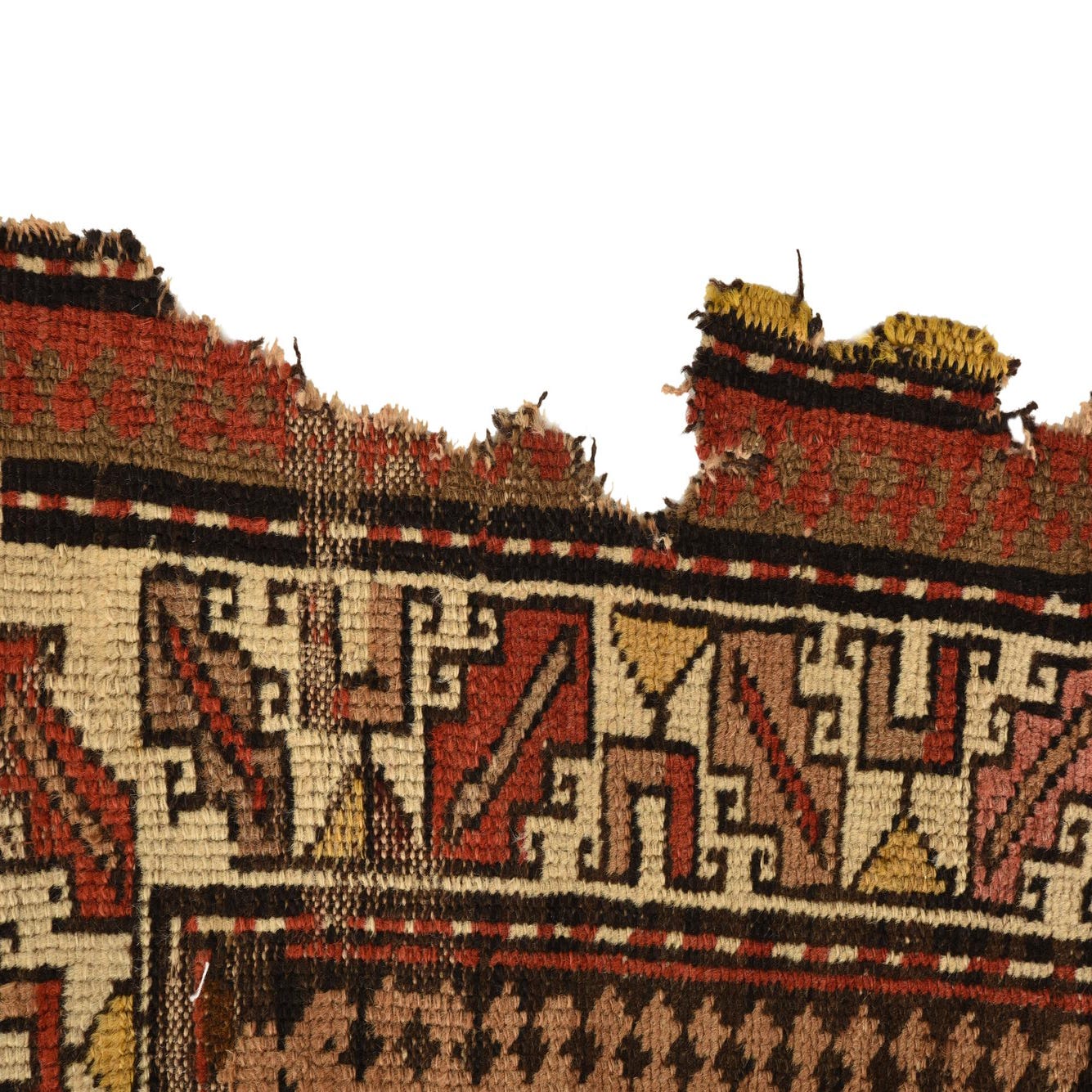 Primary color is Red. Colors in this rug include: Red, Brown, Ivory, Orange.