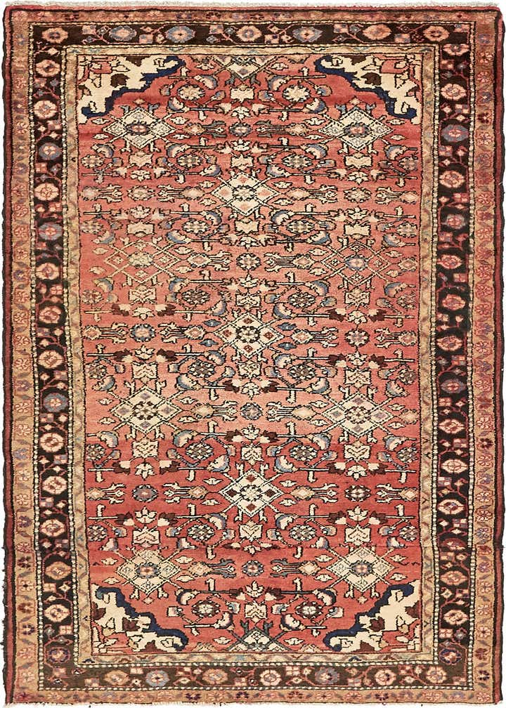 Primary image 3' 8 x 7' 3  Hand Knotted Hossainabad Persian Wool Rug