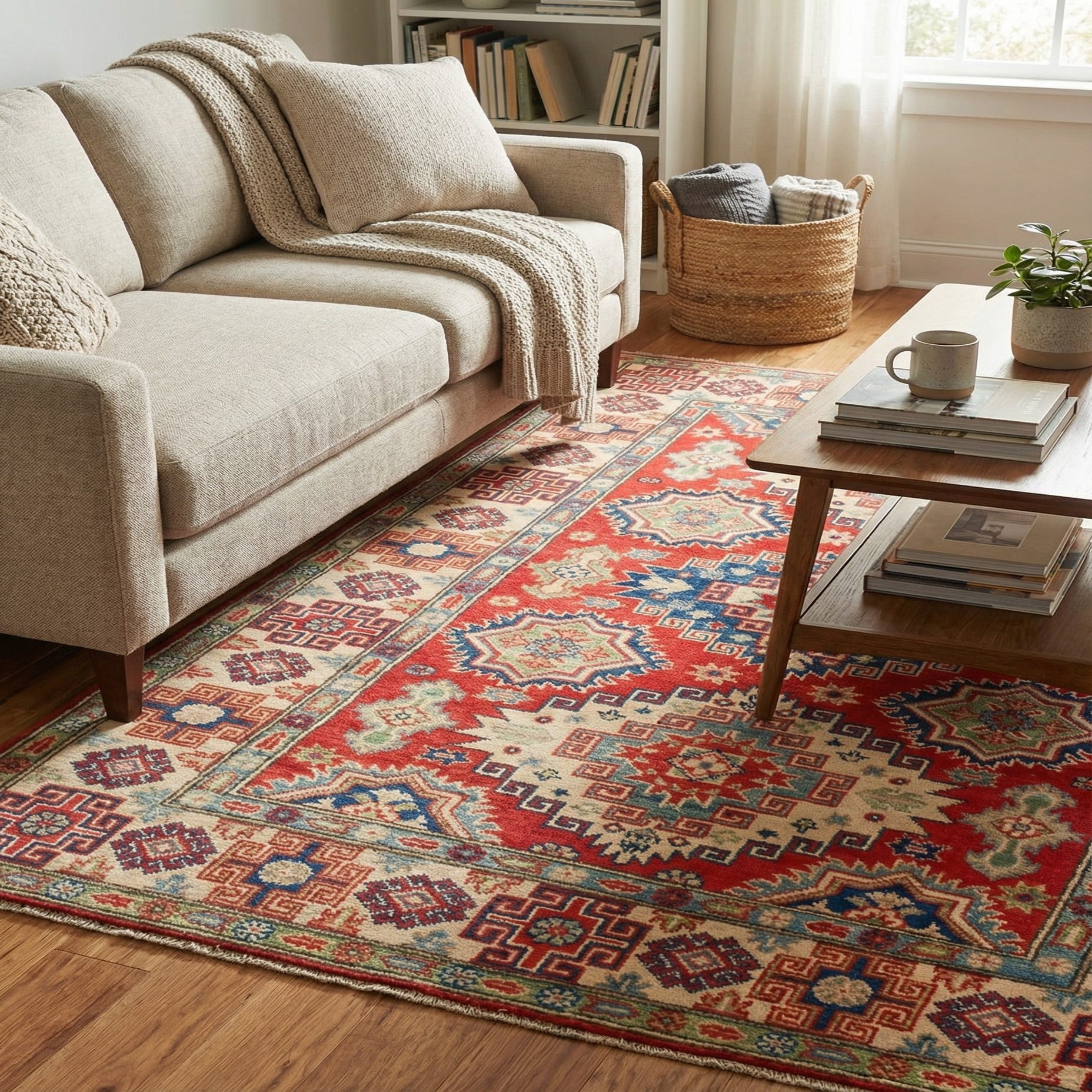 Primary image 4' x 5' 10  Hand Knotted Kazak Rug