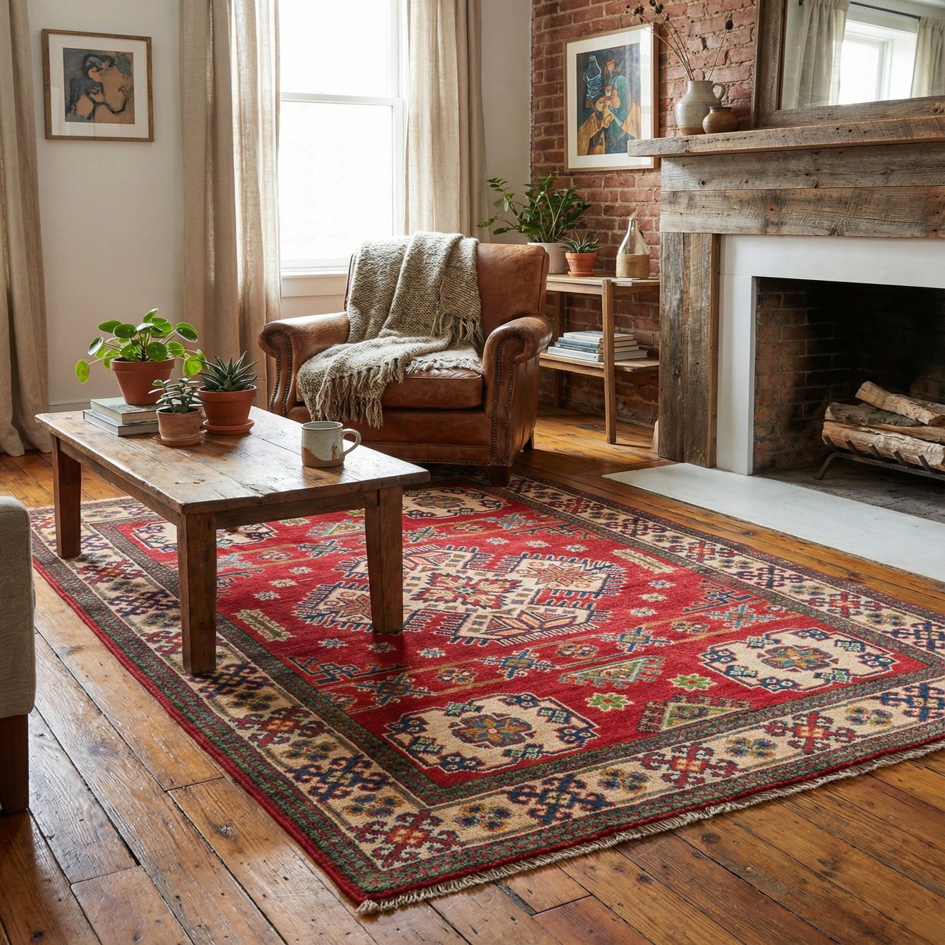Primary image 3' 6 x 5'  Hand Knotted Kazak Rug
