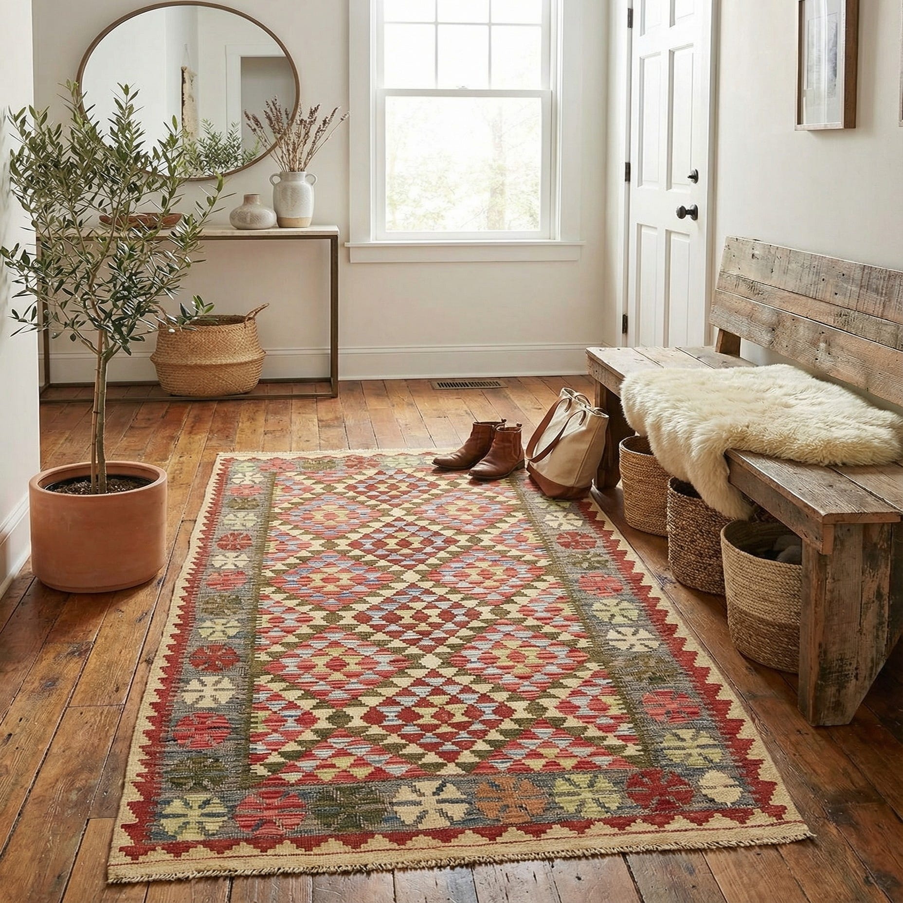 3' 2 x 6' 3 Hand Woven Kilim Maymana Wool Rug