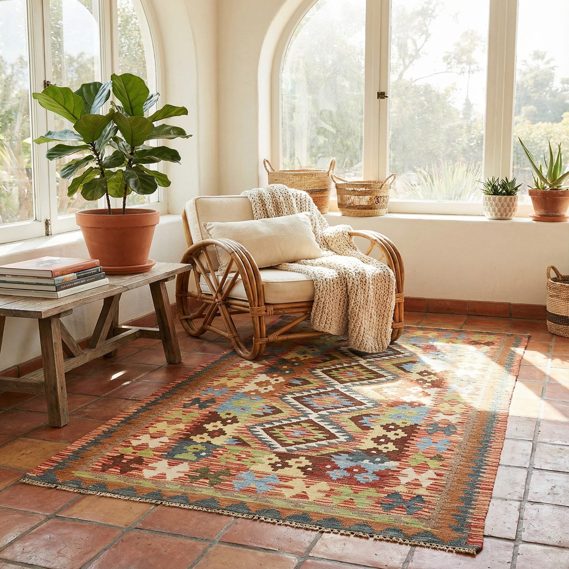 3' 3 x 6' 3 Hand Woven Kilim Maymana Wool Rug