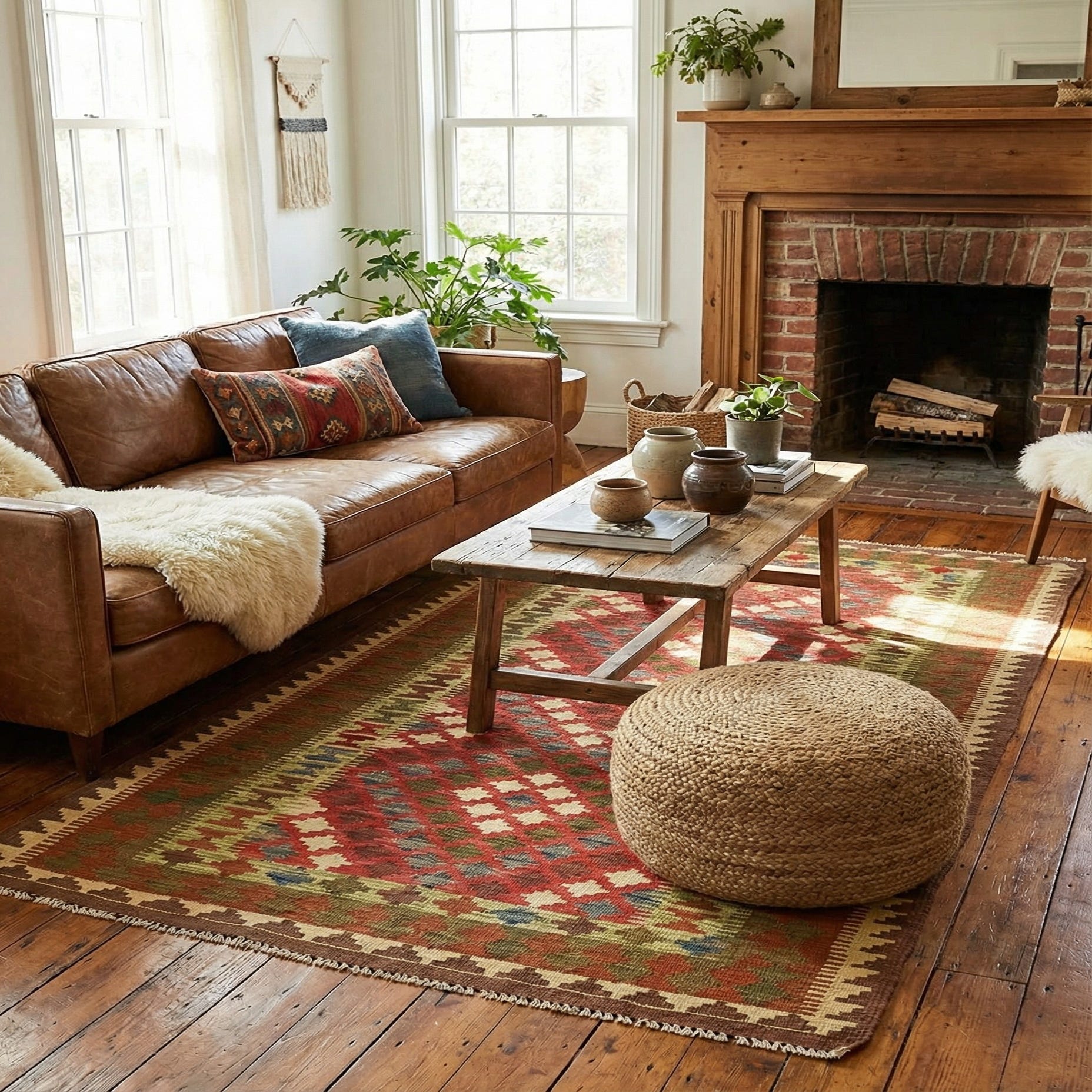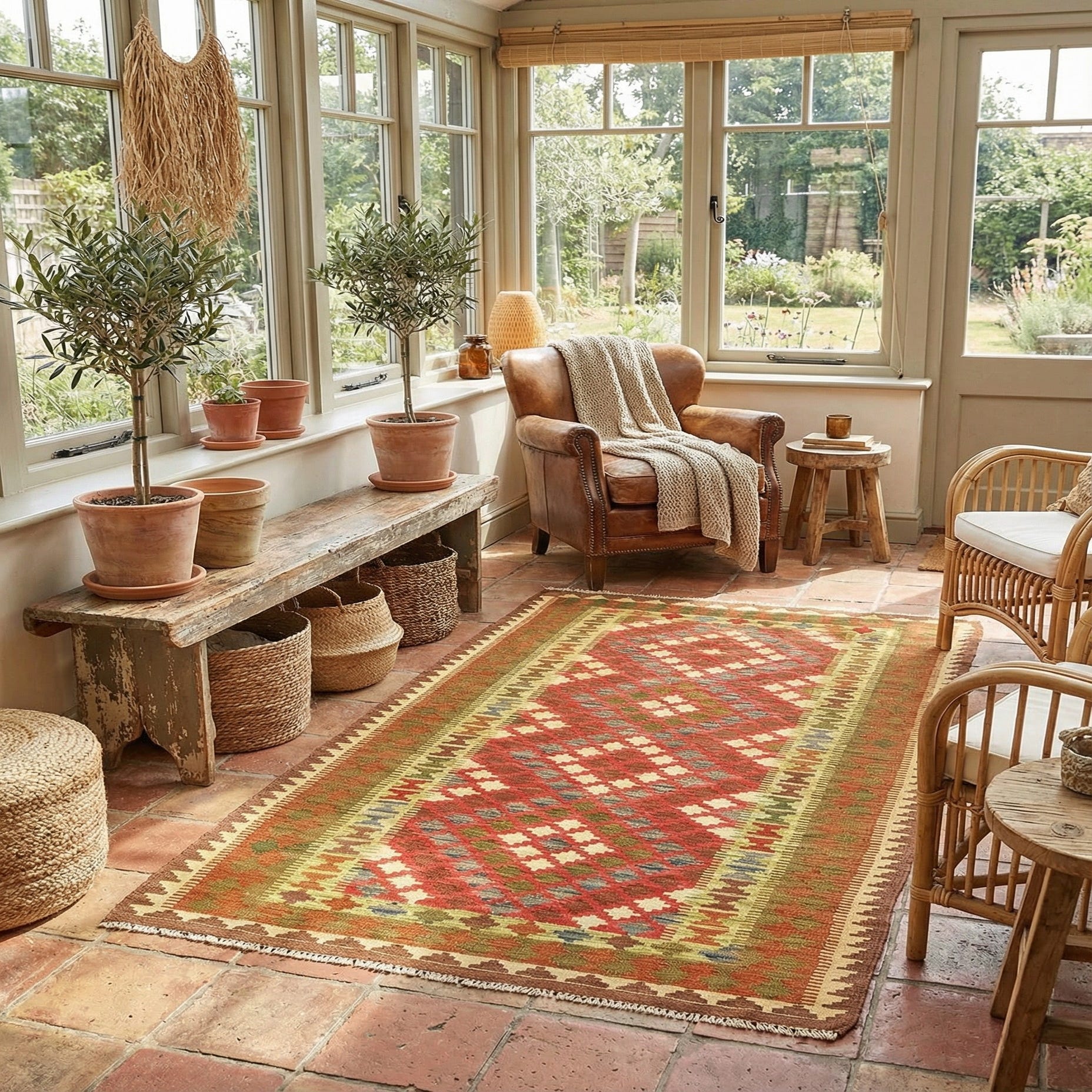 3' 4 x 6' 3 Hand Woven Kilim Maymana Wool Rug