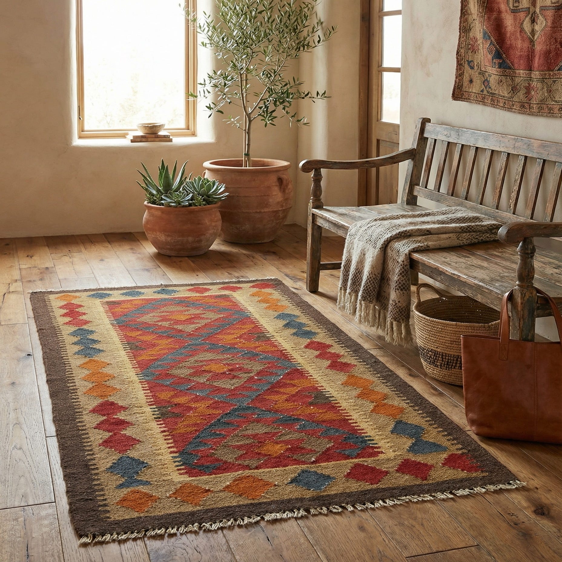 3' 2 x 6' Hand Woven Kilim Maymana Wool Rug
