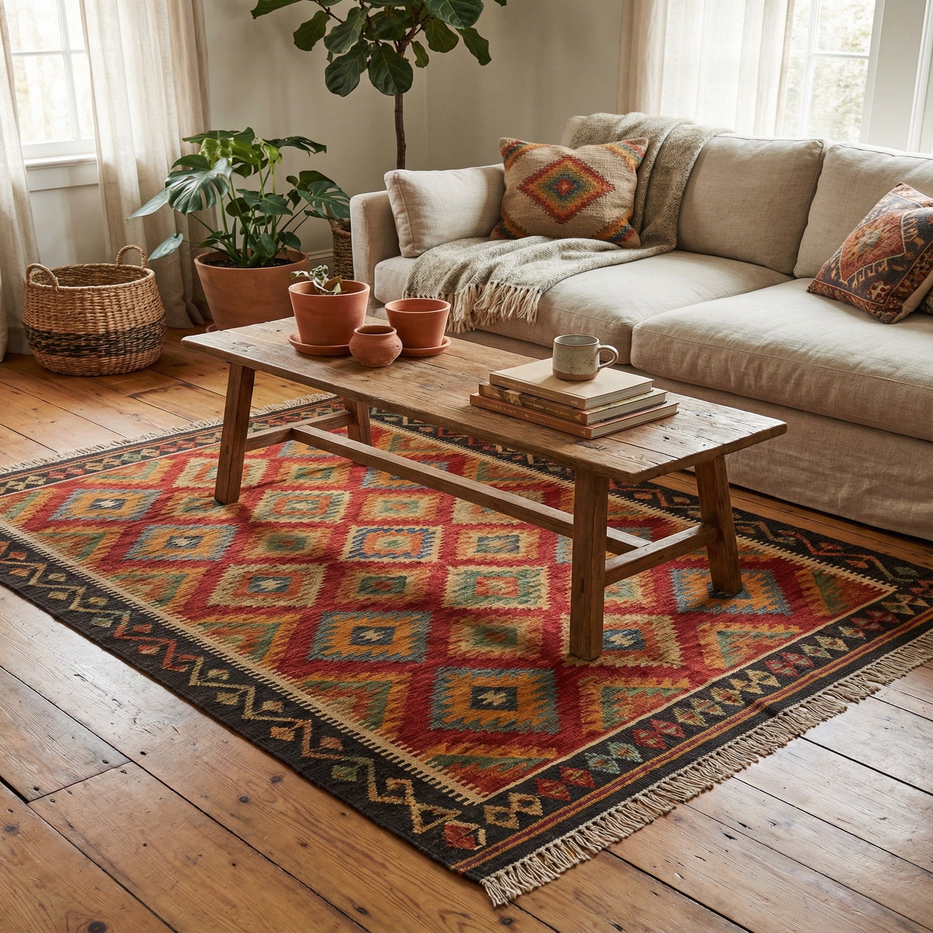 3' 6 x 4' 10 Hand Woven Kilim Maymana Wool Rug