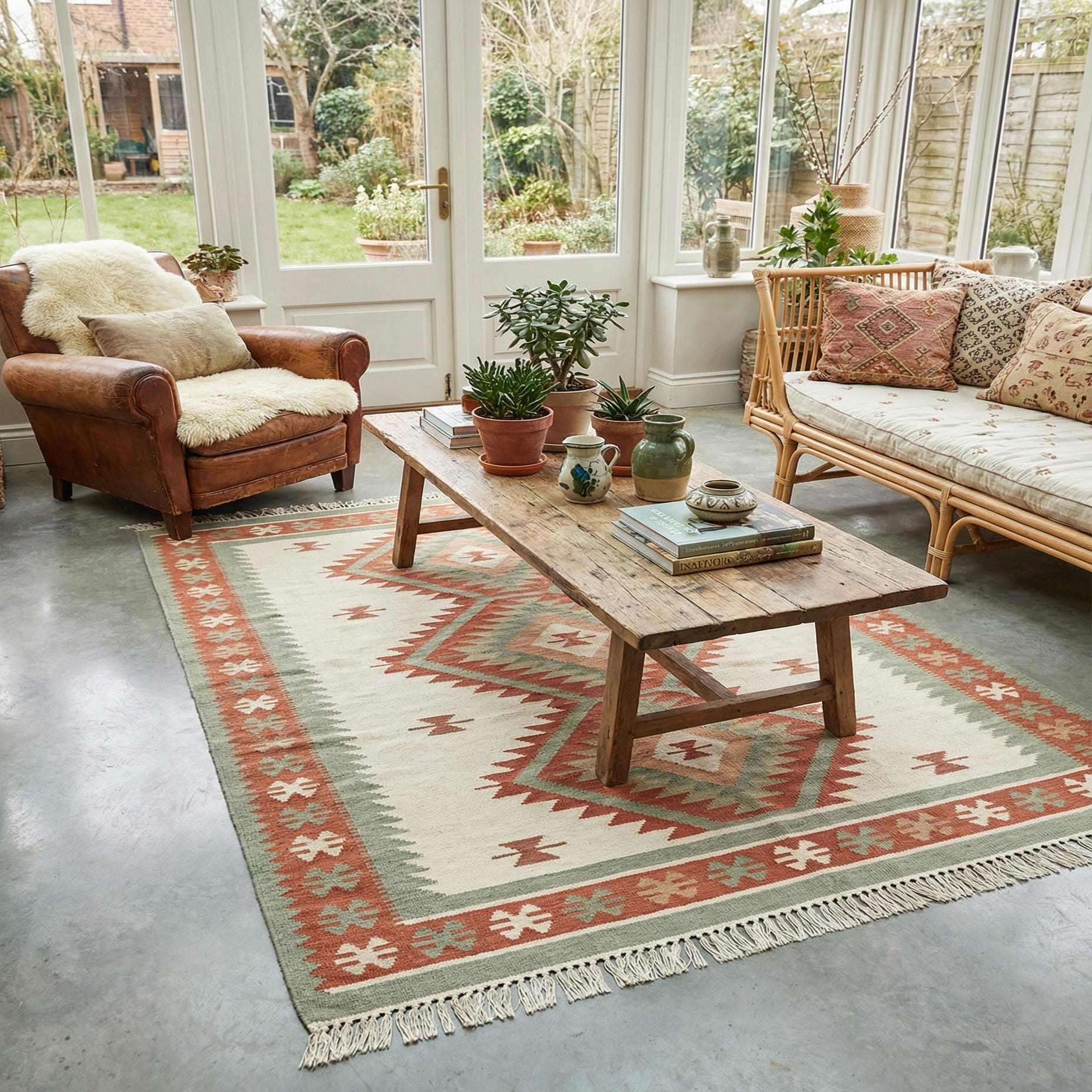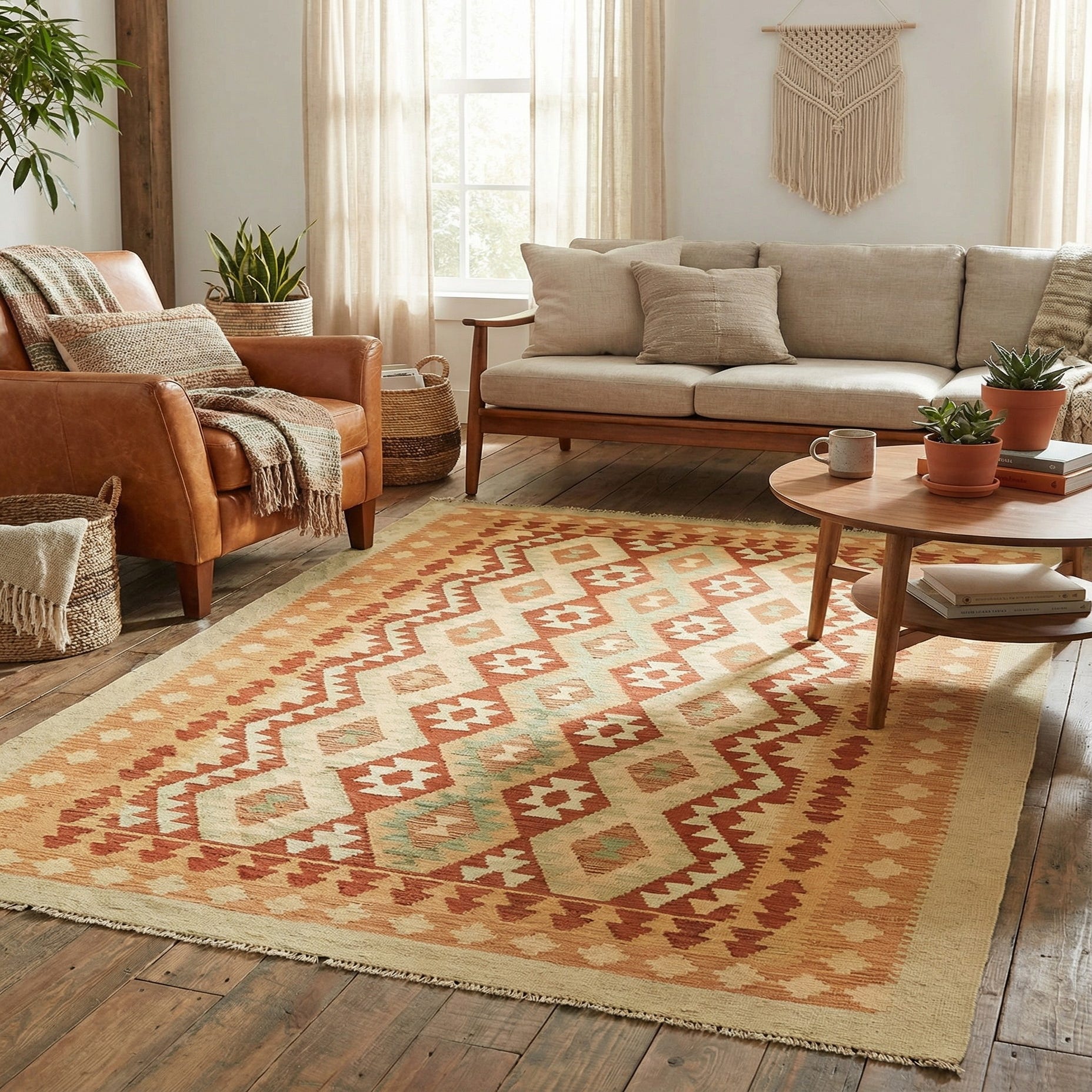 4' 9 x 6' 6 Hand Woven Kilim Waziri Wool Rug