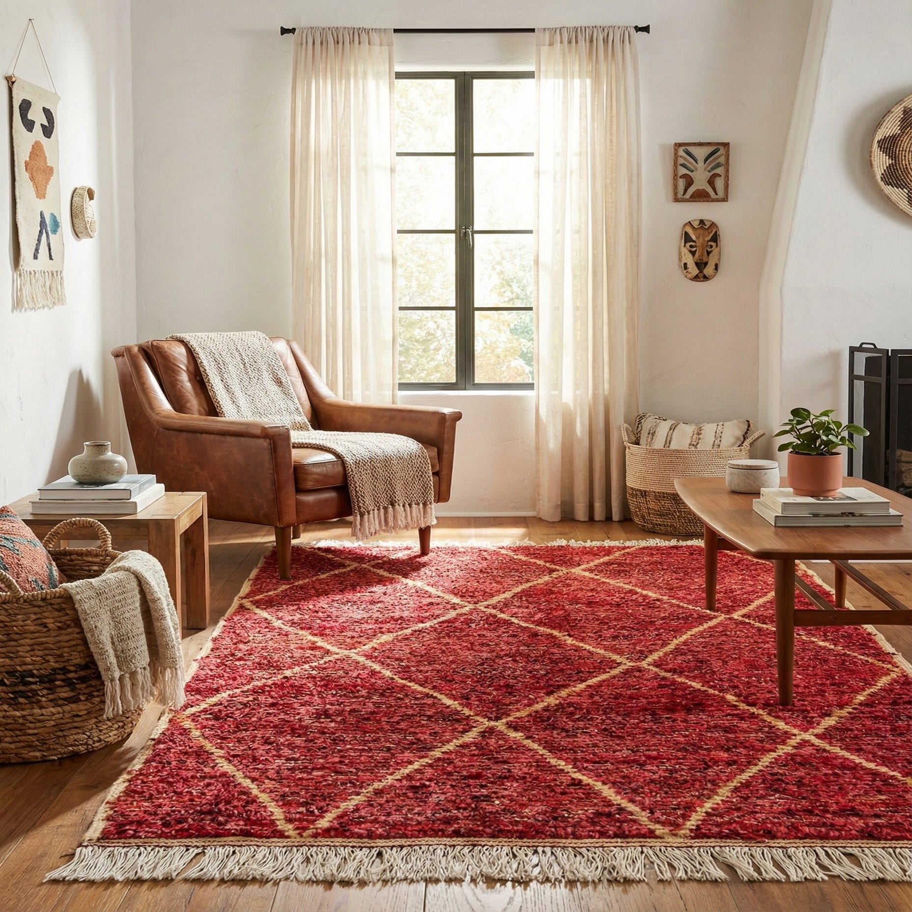 Primary color is Red. Colors in this rug include: Red, Beige, Black.