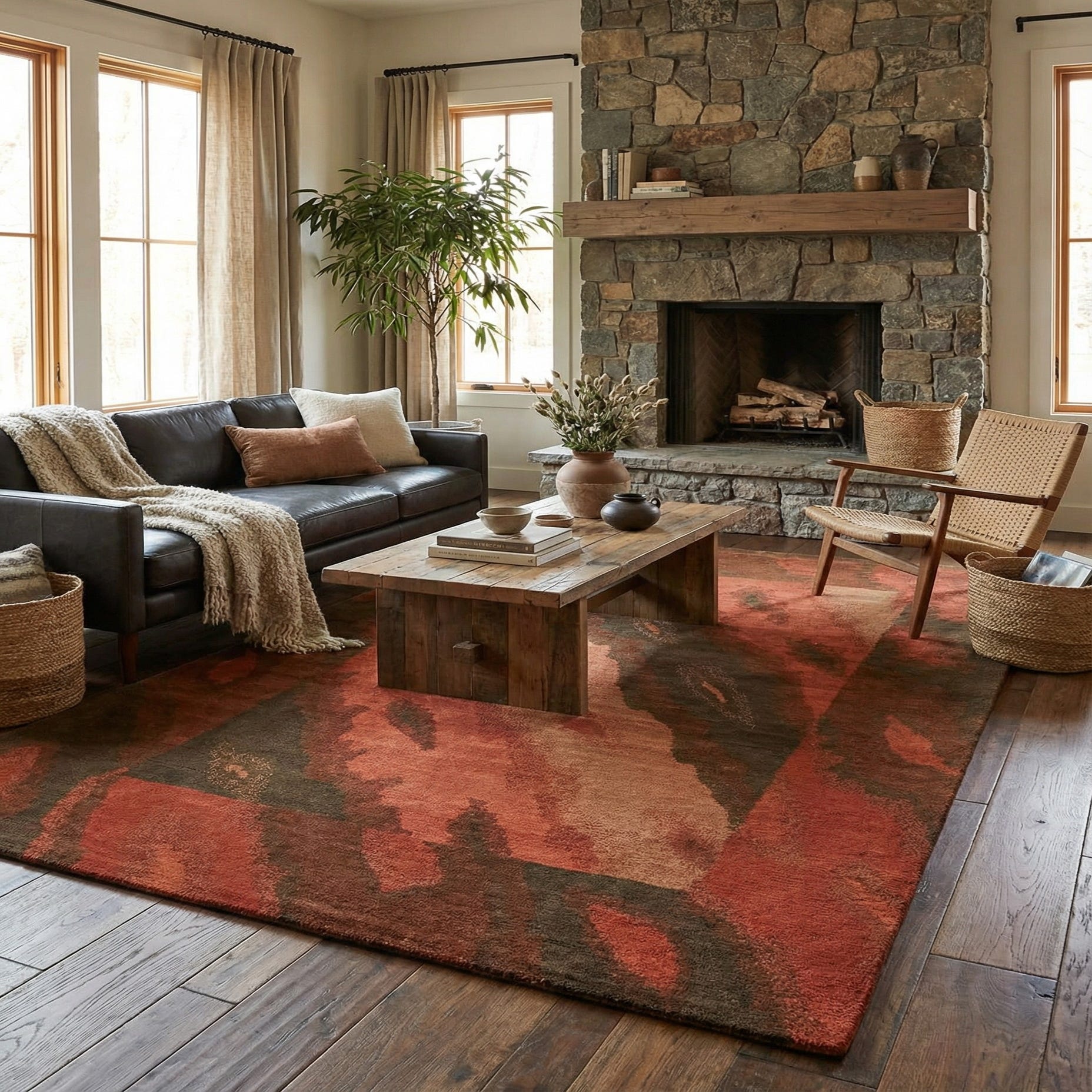 Primary color is Red. Colors in this rug include: Red, Black, Brown.