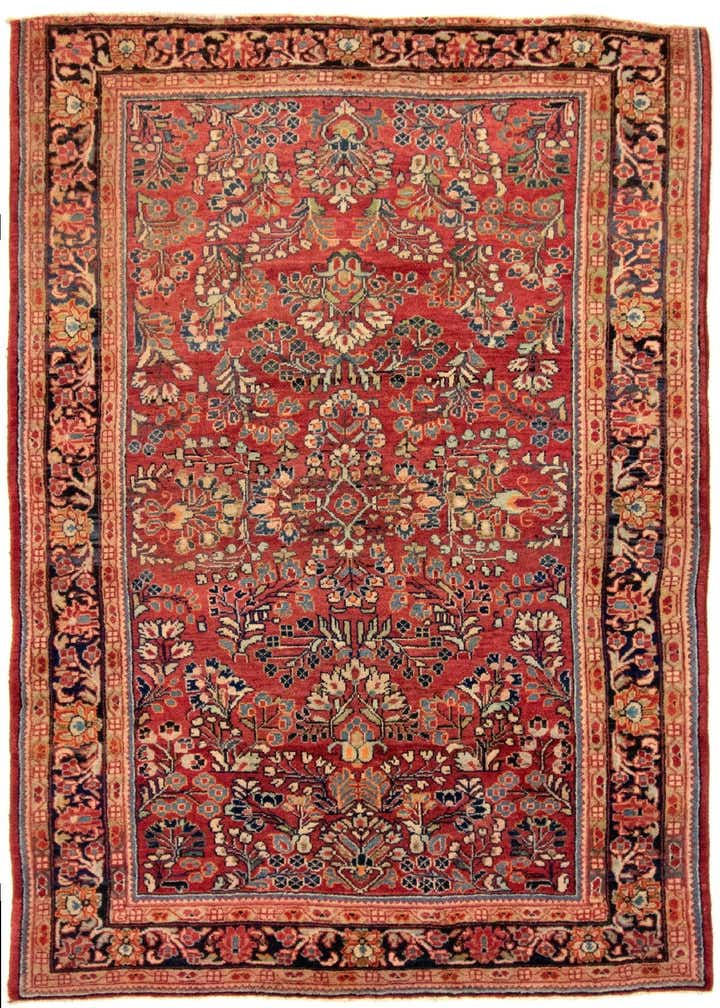 4' 5 x 6' 11 Hand Knotted Sarough Persian Wool Rug