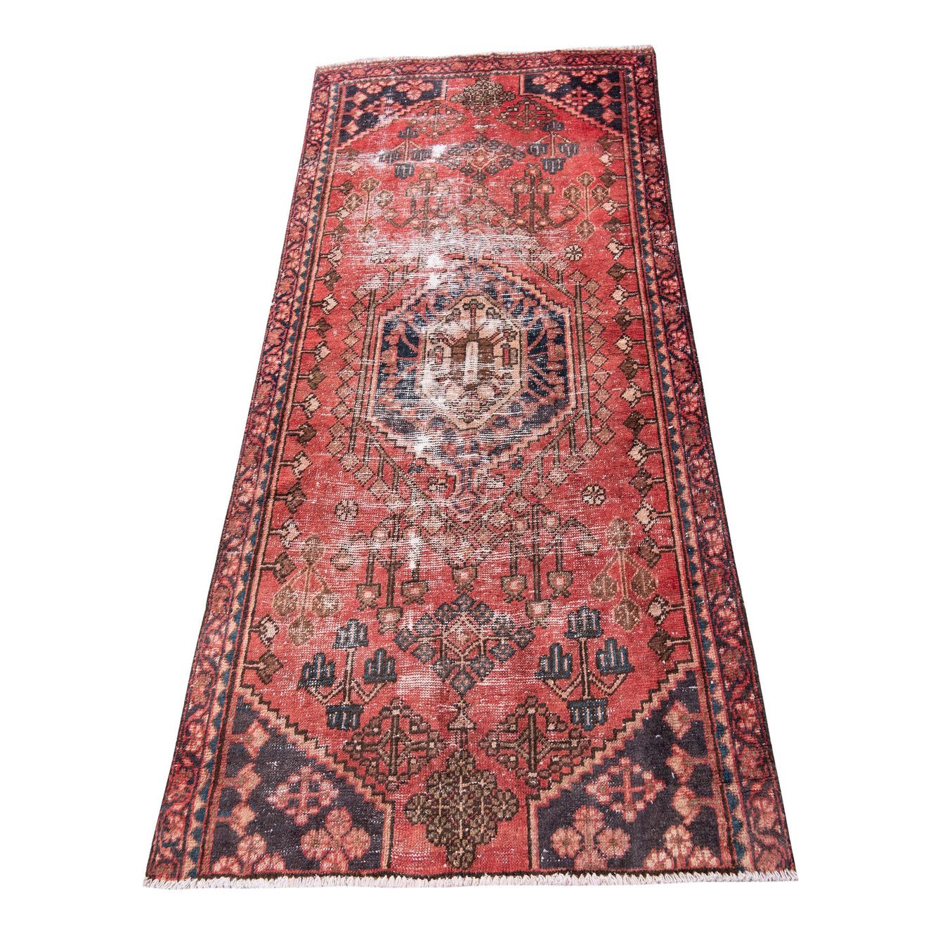 This Persian Ultra Vintage rug is an antique Persian Rug that has been washed, over-dyed, and then shaved down to a low pile. Look at the detail pictures to fully appreciate the uniqueness of this piece.
