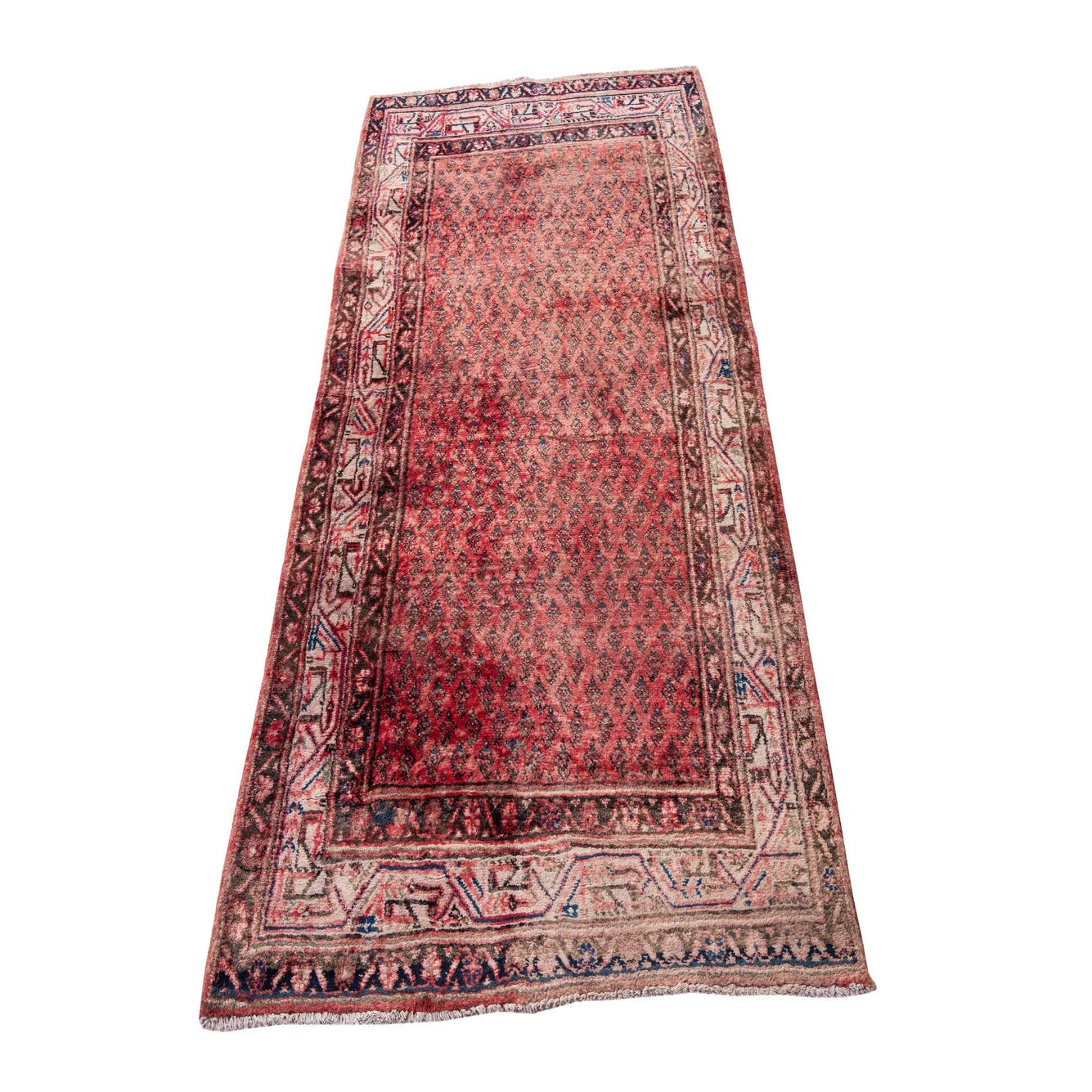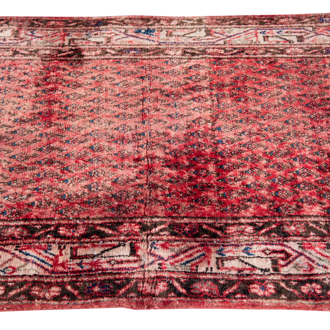 This Persian Ultra Vintage rug is an antique Persian Rug that has been washed, over-dyed, and then shaved down to a low pile. Look at the detail pictures to fully appreciate the uniqueness of this piece.