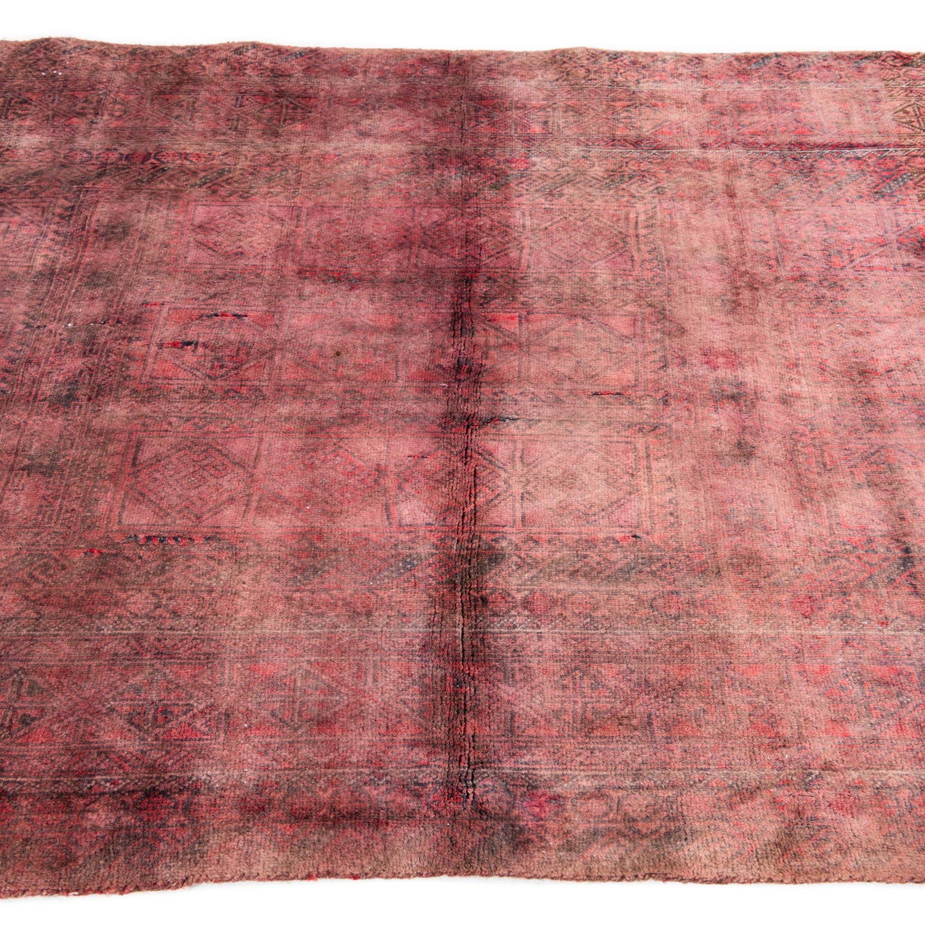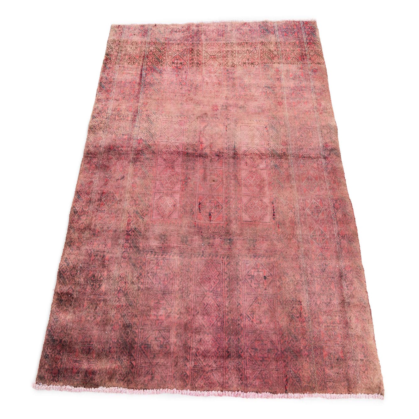 This Persian Ultra Vintage rug is an antique Persian Rug that has been washed, over-dyed, and then shaved down to a low pile. Look at the detail pictures to fully appreciate the uniqueness of this piece.