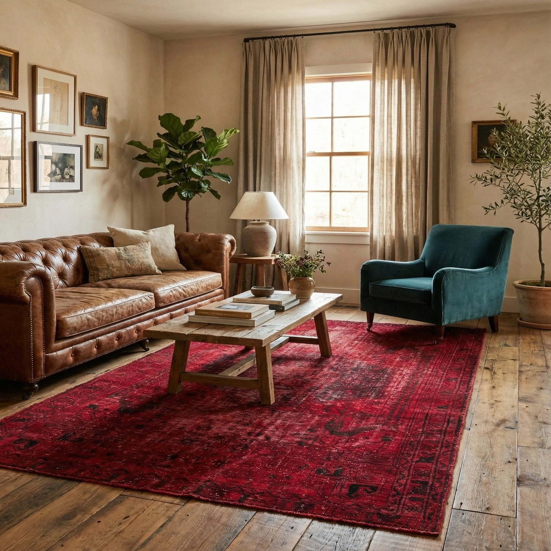 This Persian Ultra Vintage rug is an antique Persian Rug that has been washed, over-dyed, and then shaved down to a low pile. Look at the detail pictures to fully appreciate the uniqueness of this piece.