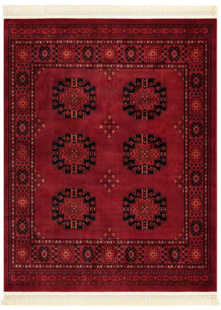 Primary color is Red. Colors in this rug include: Red, Black, Cream, Terracotta.