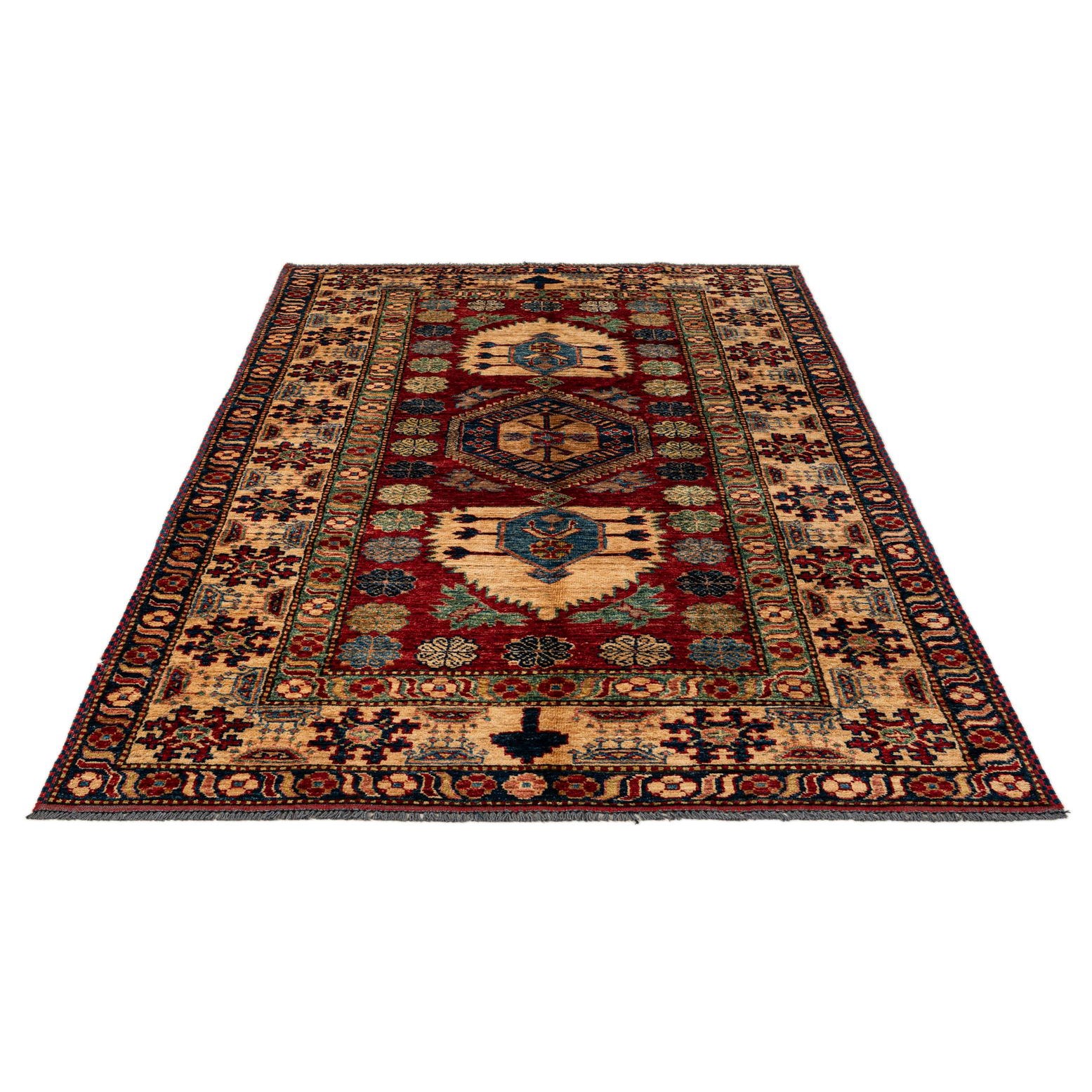 4' 2 x 7' 4 Hand Knotted Kazak Wool Rug