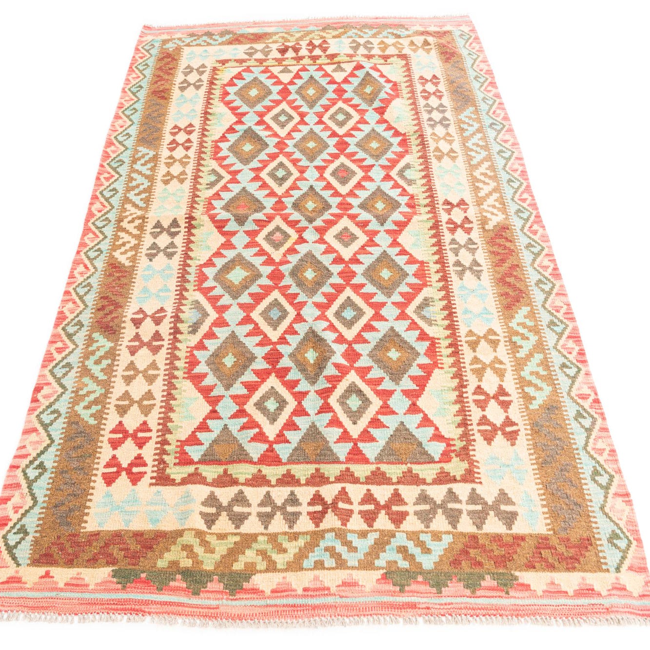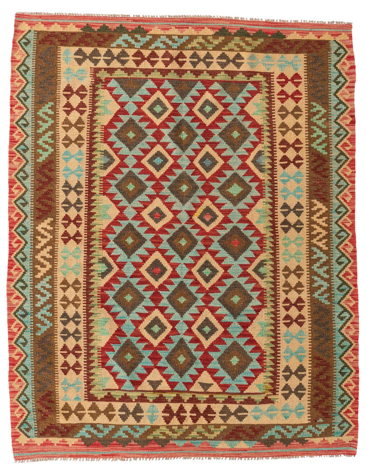 5' 2 x 6' 9 Hand Woven Kilim Maymana Wool Rug