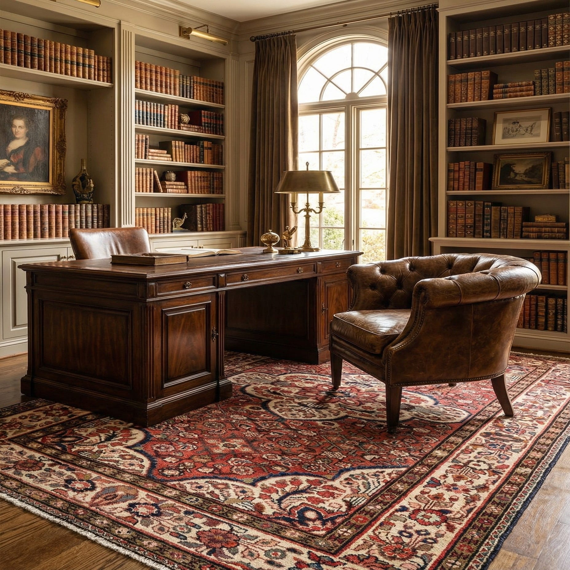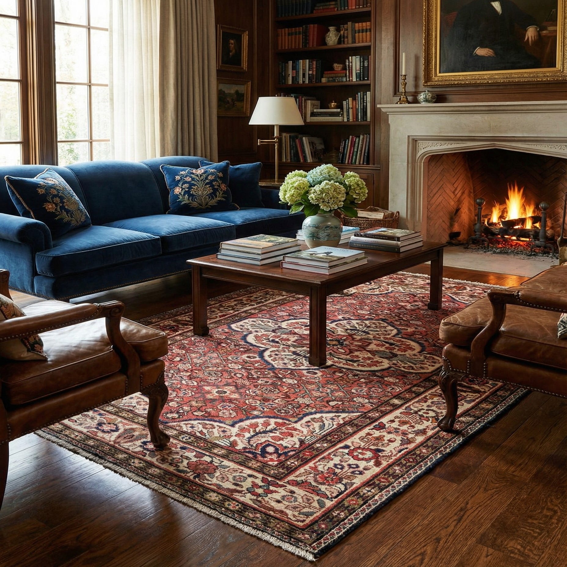 Primary color is Red. Colors in this rug include: Red, Red, Beige, Brown, Black, Blue.