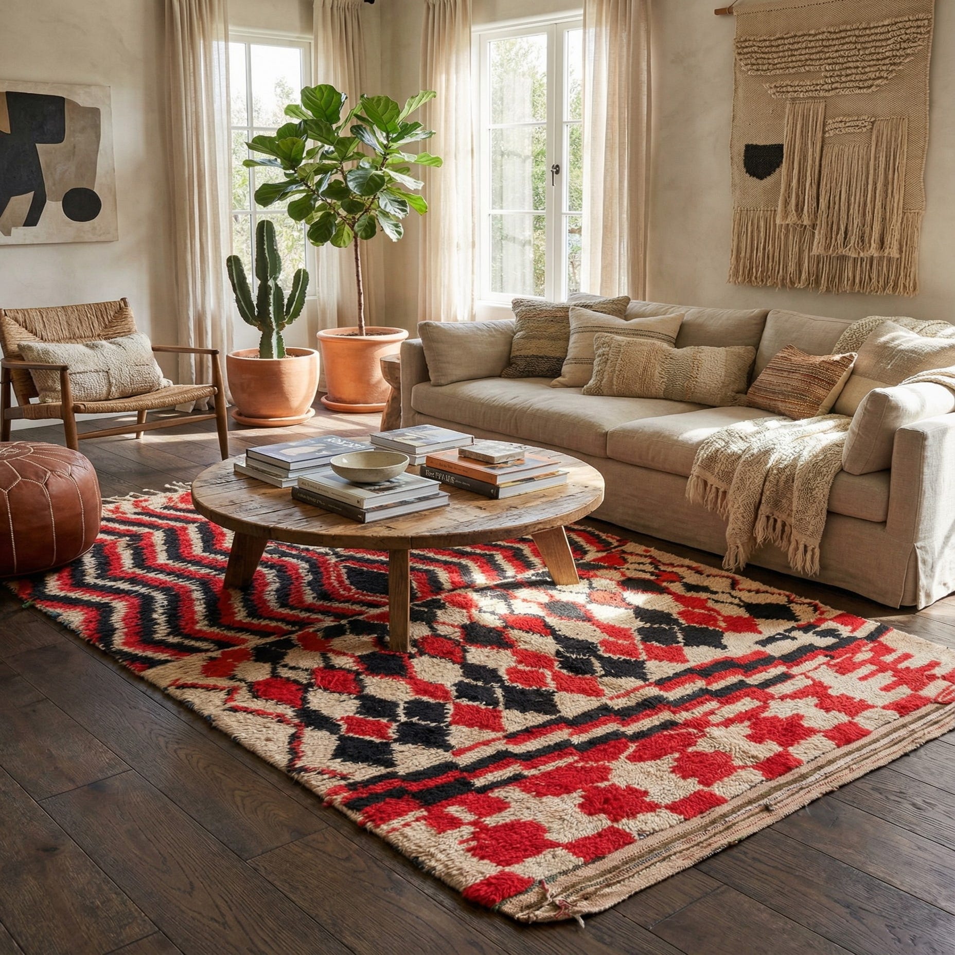5' 2 x 9' 3 Hand Knotted Moroccan Wool Rug