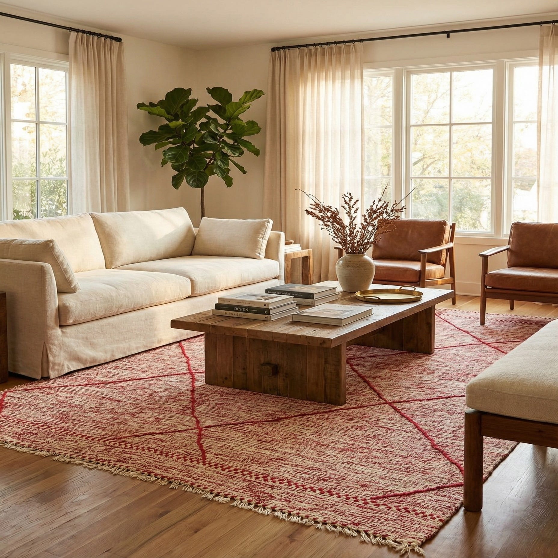Primary color is Red. Colors in this rug include: Red, Ivory.