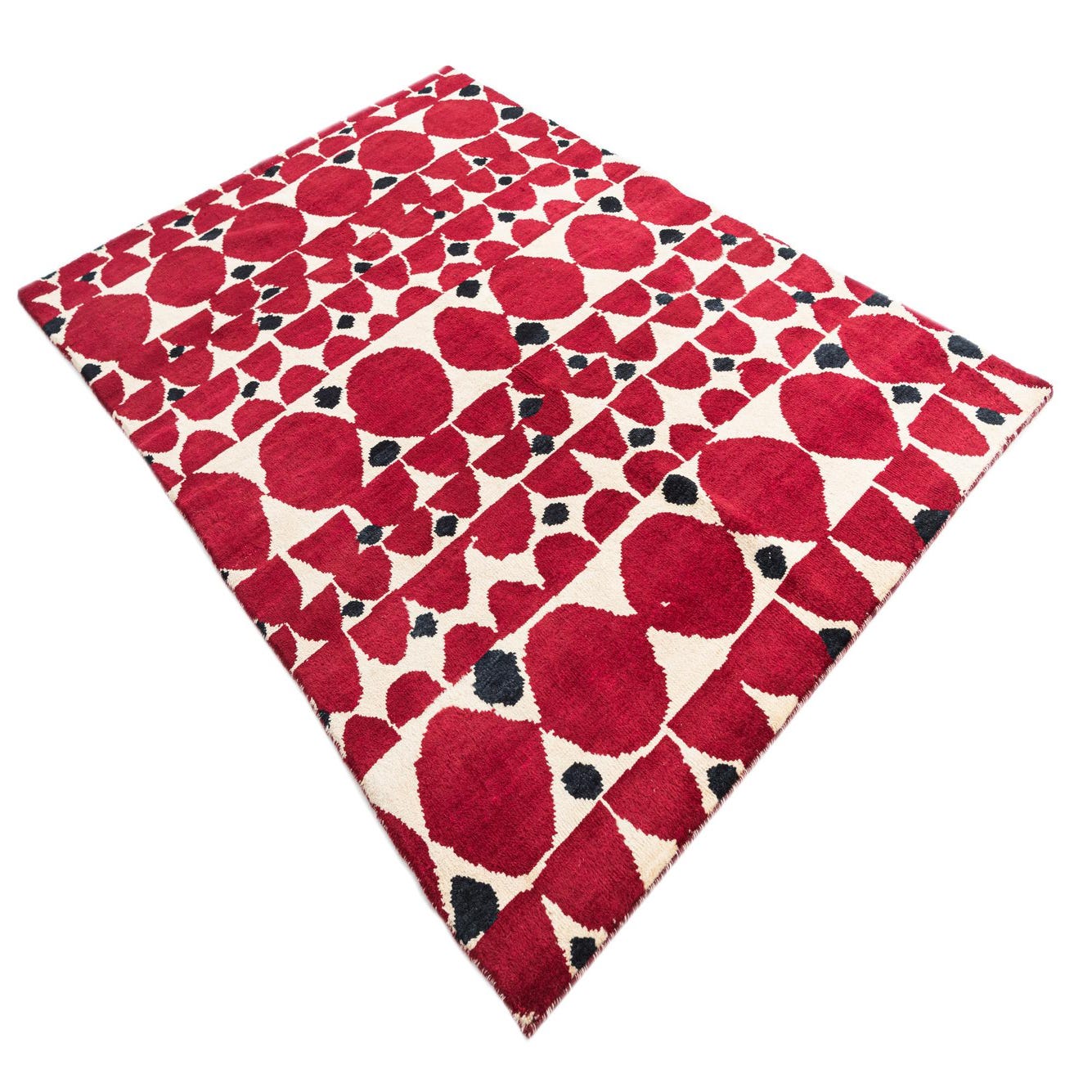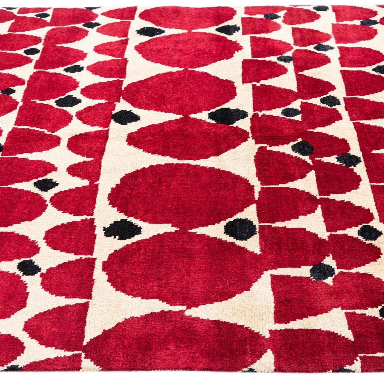 Primary color is Red. Colors in this rug include: Red, Cream.