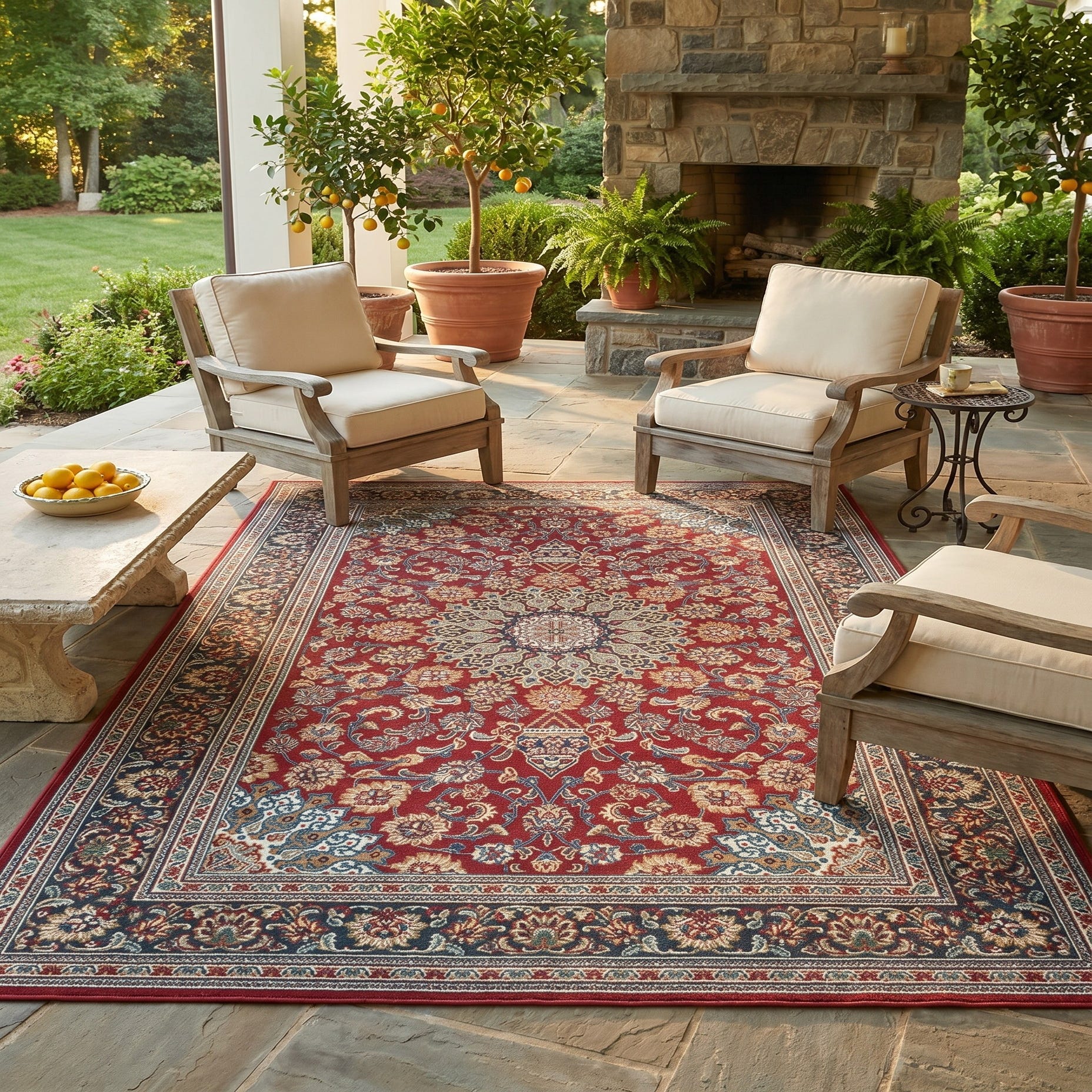 5' 3 x 8' Easy-Clean Traditional Indoor / Outdoor Rug