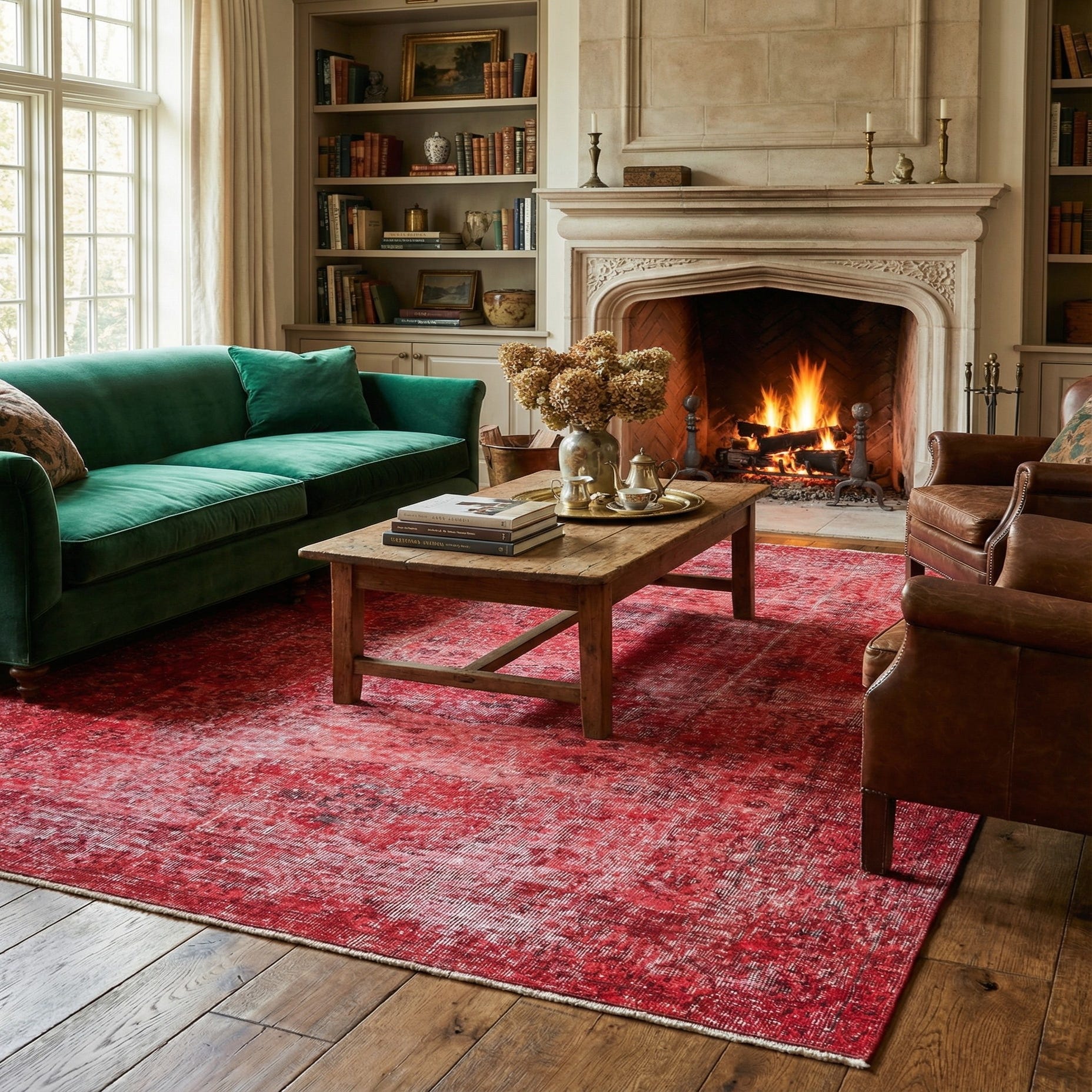 Primary color is Red. Colors in this rug include: Red, Beige, Rust Red, Brown.
