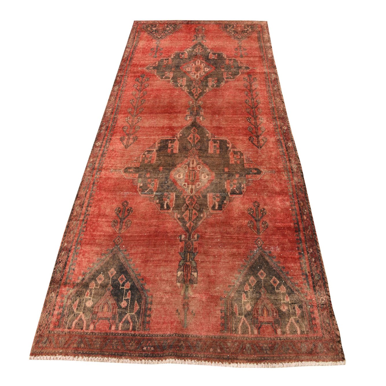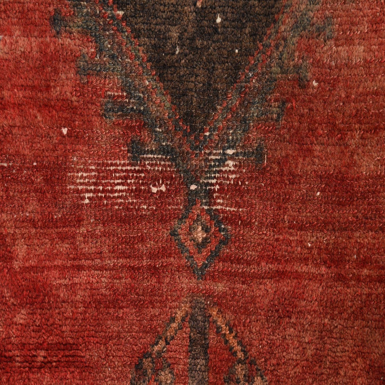 Primary color is Red. Colors in this rug include: Red, Black, Brown.
