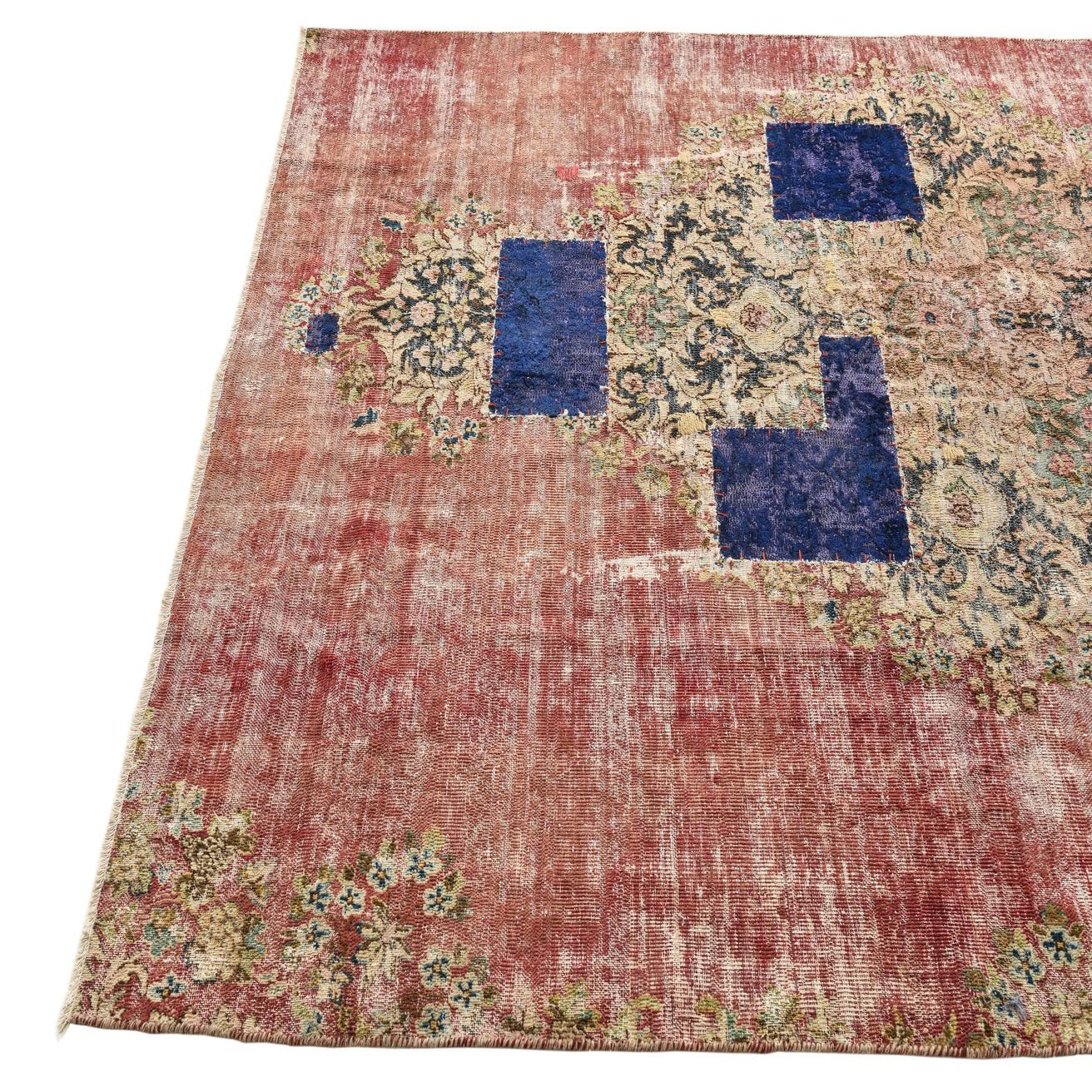 This Persian Ultra Vintage rug is an antique Persian Rug that has been washed, over-dyed, and then shaved down to a low pile. Look at the detail pictures to fully appreciate the uniqueness of this piece.