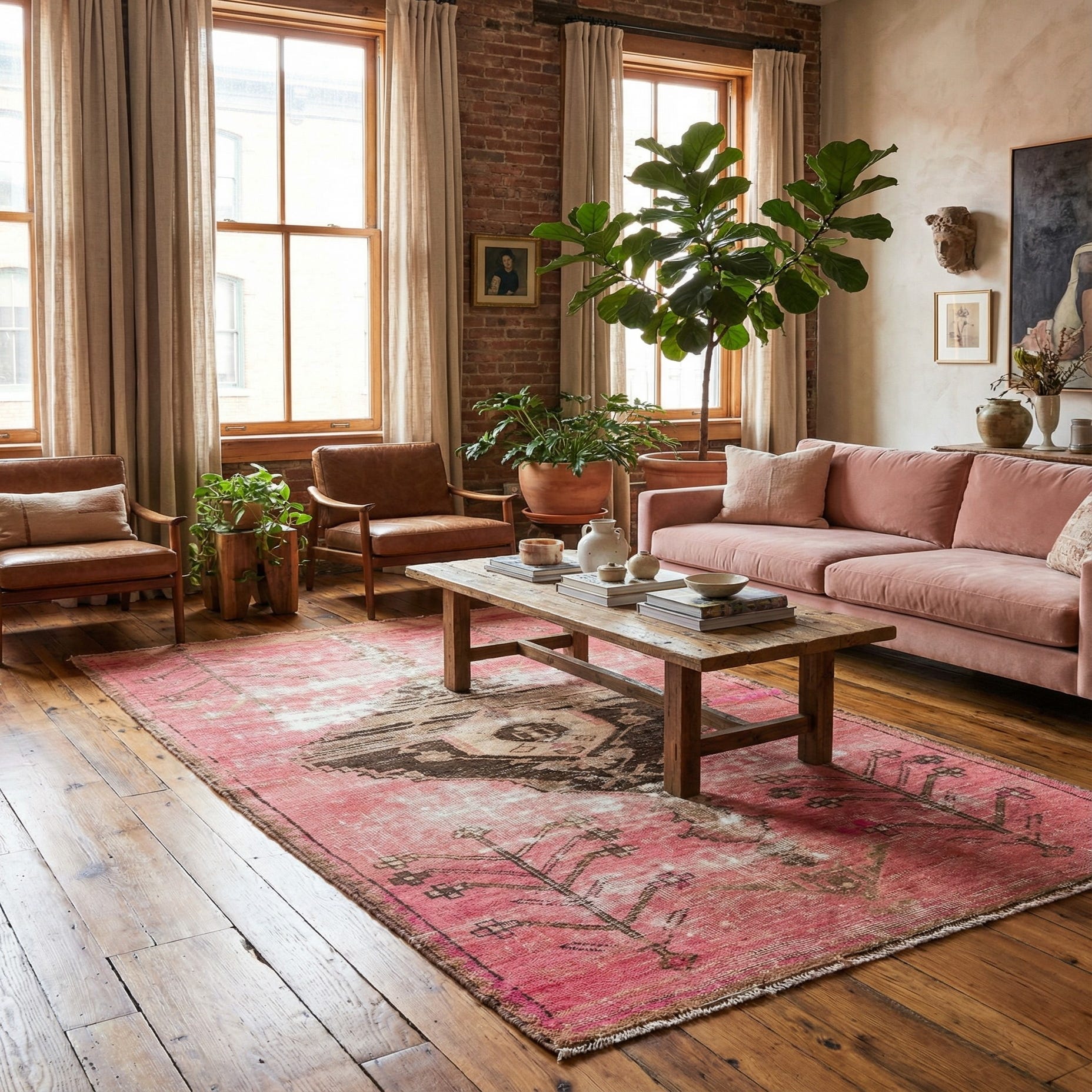 This Persian Ultra Vintage rug is an antique Persian Rug that has been washed, over-dyed, and then shaved down to a low pile. Look at the detail pictures to fully appreciate the uniqueness of this piece.