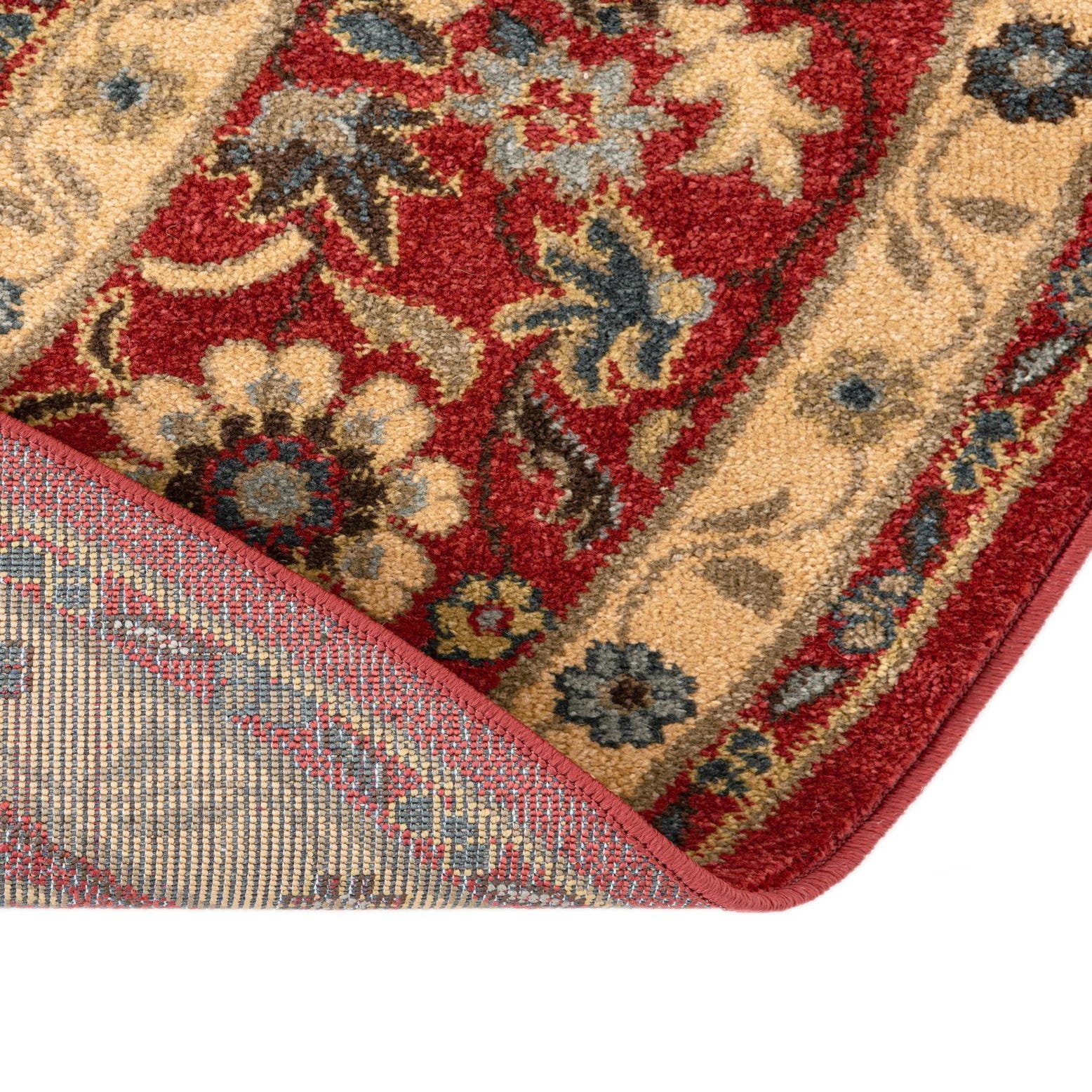 Primary color is Red. Colors in this rug include: Red, Beige, Blue, Brown, Green, Light Blue, Olive, Light Green.