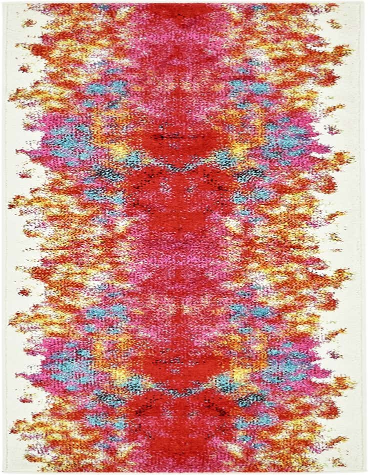 Primary color is Red. Colors in this rug include: Red, Blue, Green, Ivory, Orange, Yellow, Pink.