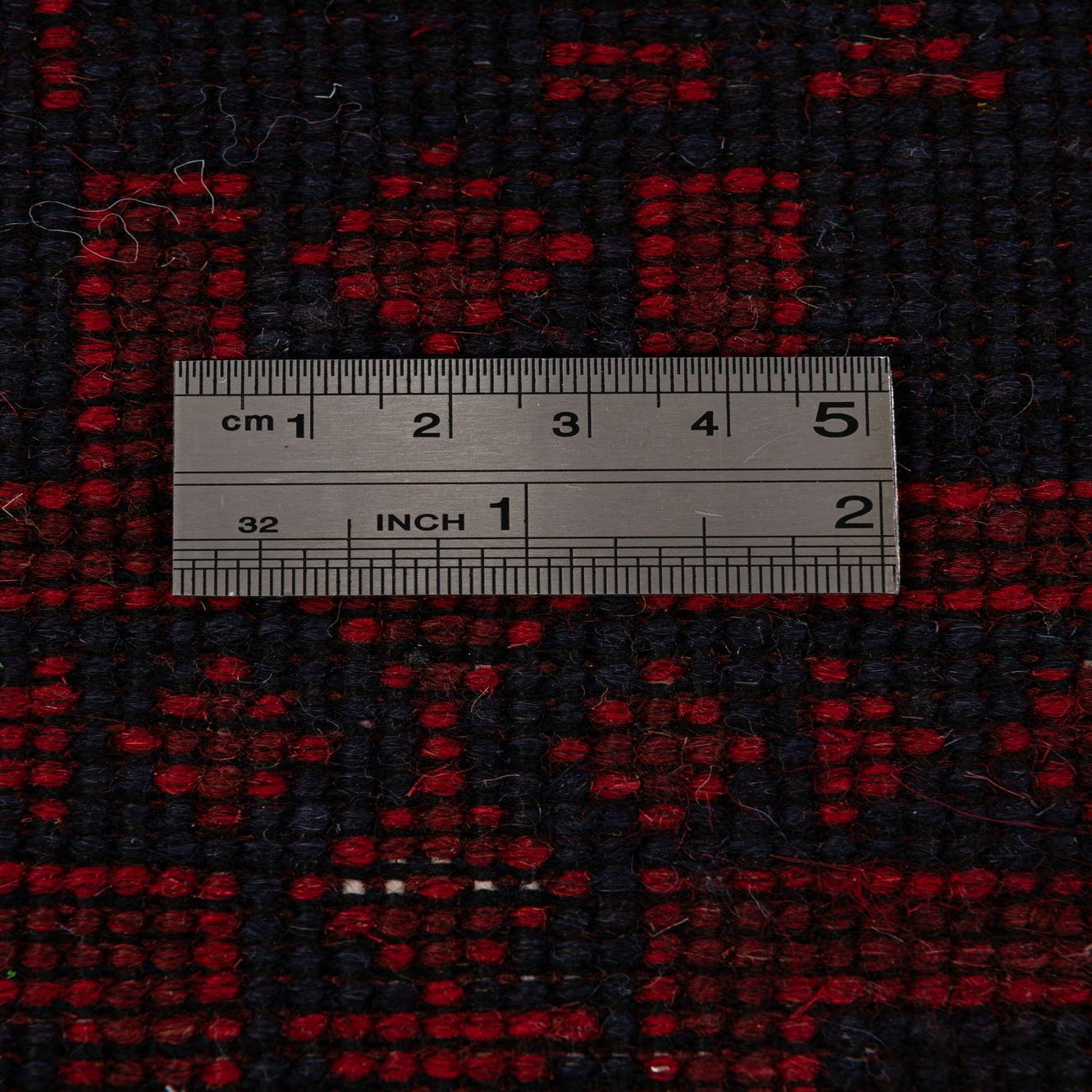 Primary color is Red. Colors in this rug include: Red, Black, Brown.