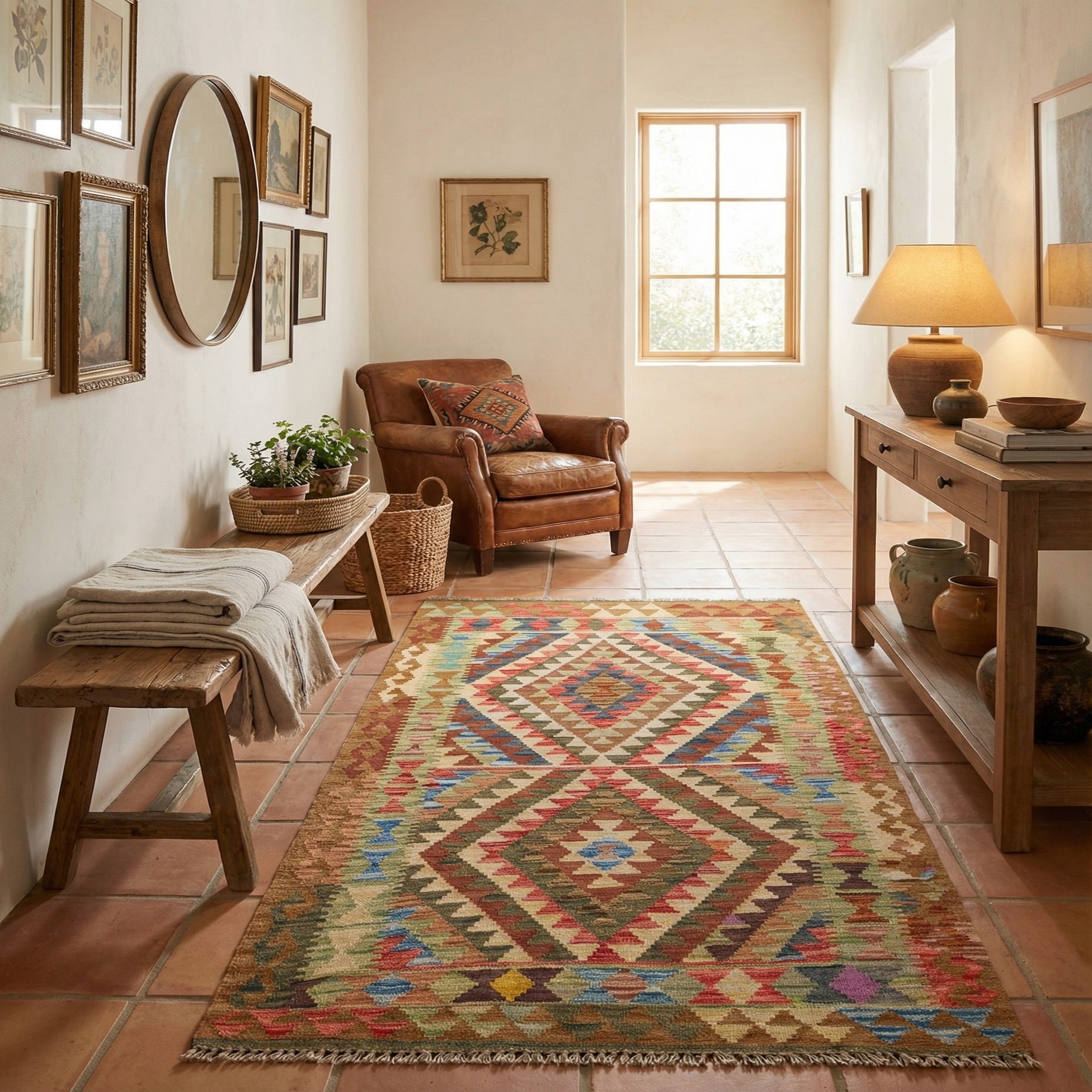 3' 2 x 6' Hand Woven Kilim Maymana Wool Runner Rug