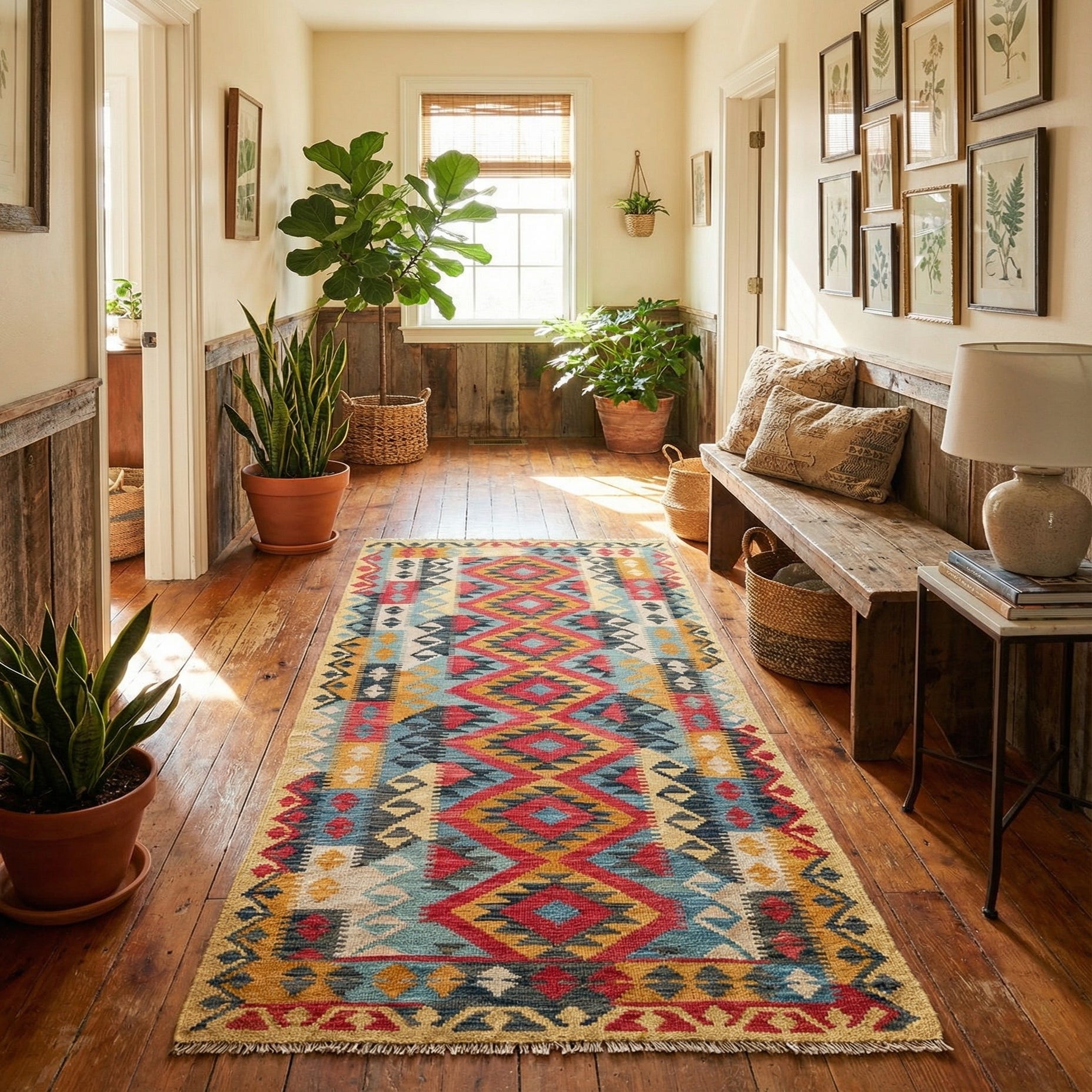 3' 3 x 6' 6 Hand Woven Kilim Maymana Wool Runner Rug