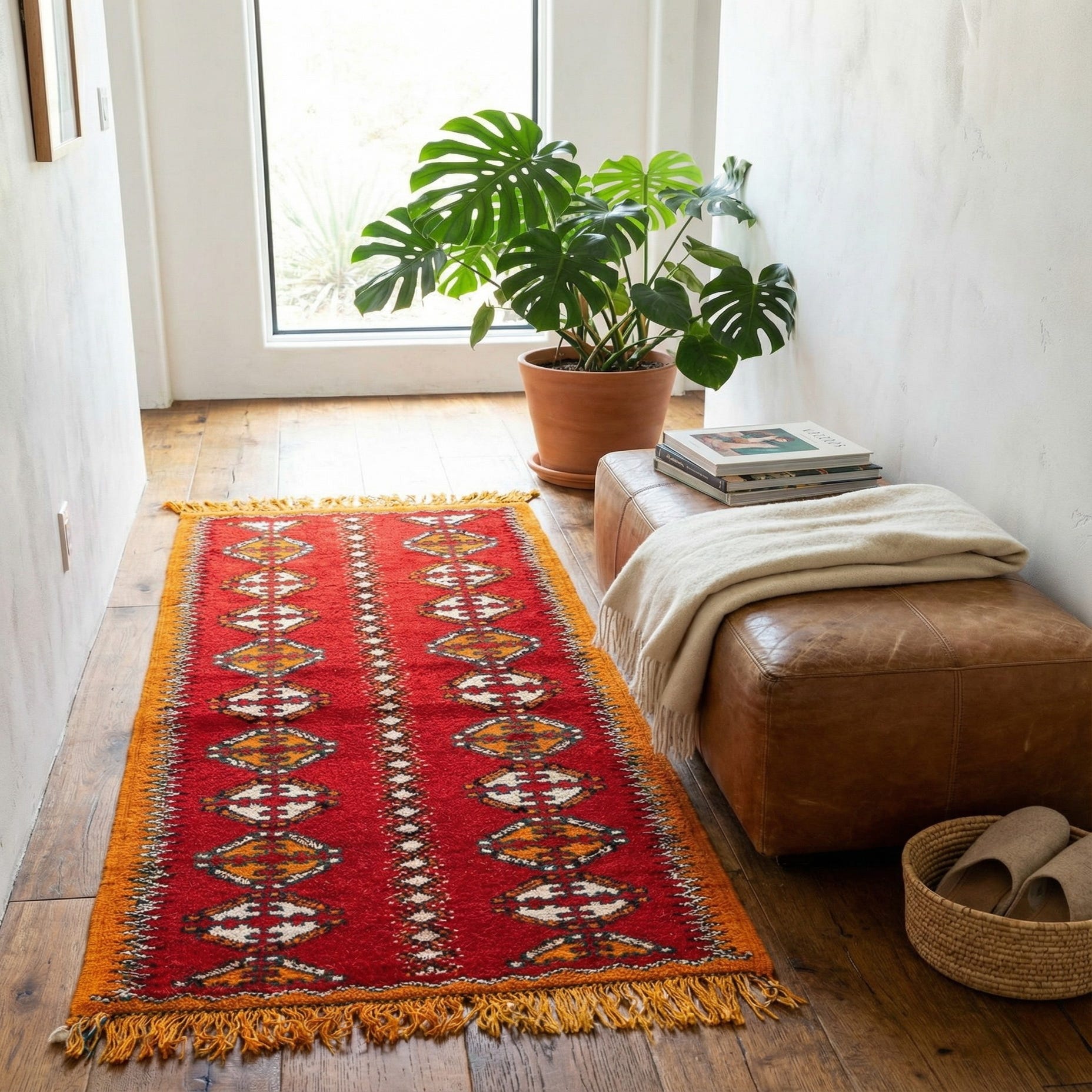 Detail image of 2' 5 x 5' 6  Hand Knotted Moroccan Wool Runner Rug