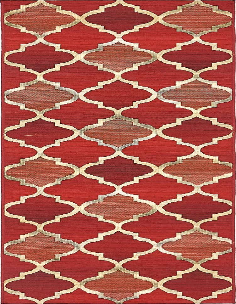 Primary color is Red. Colors in this rug include: Red, Ivory, Burgundy.
