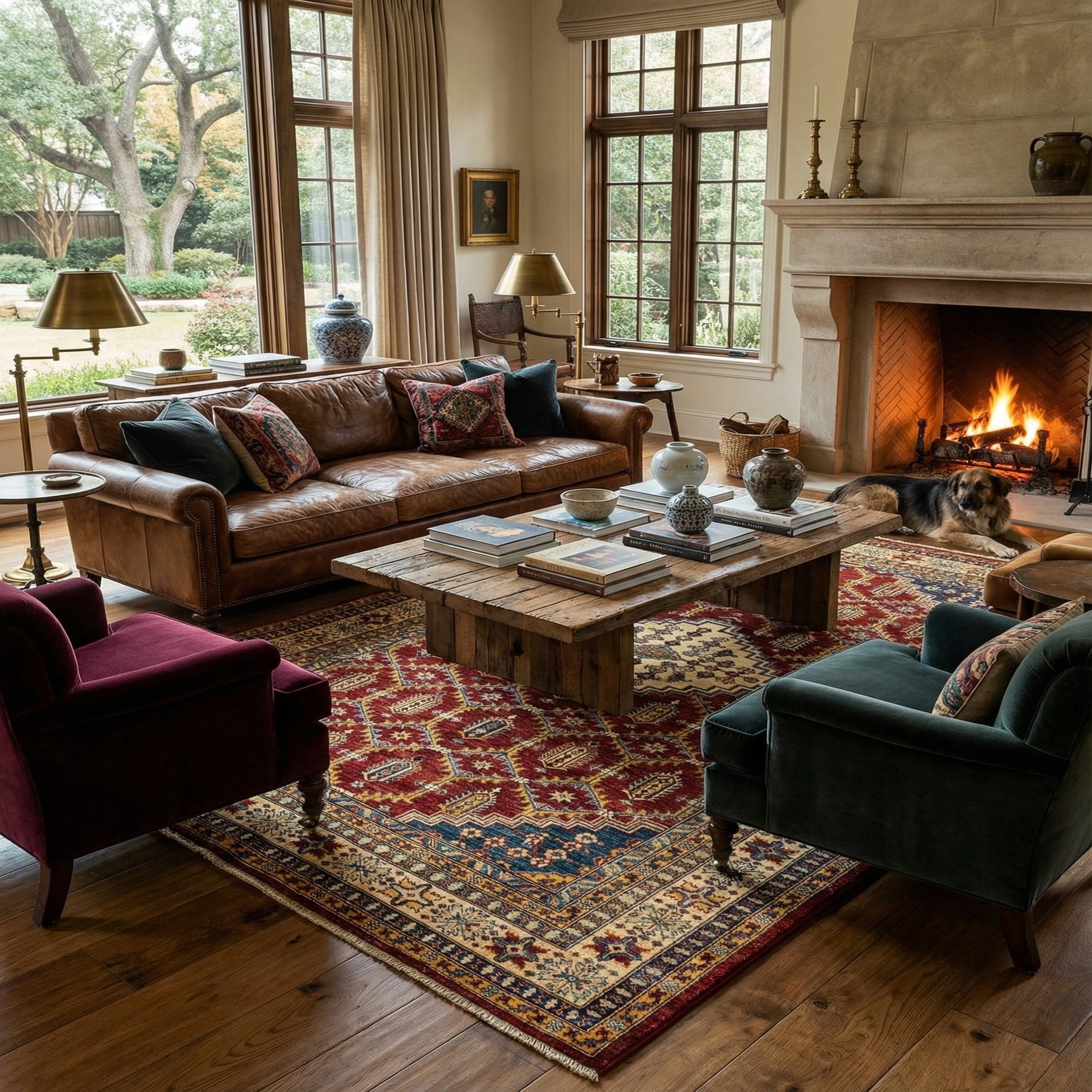 Primary color is Red. Colors in this rug include: Red, Red, Cream, Blue, Green, Yellow, Brown.