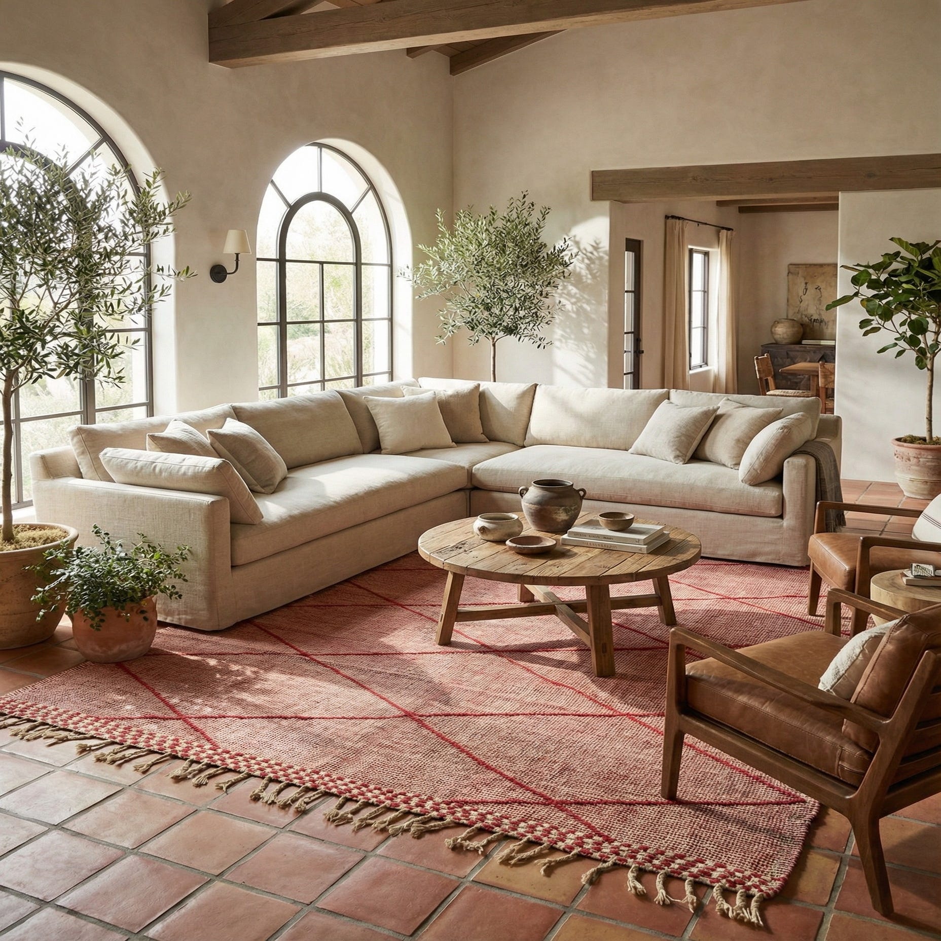 Primary color is Red. Colors in this rug include: Red, Ivory.